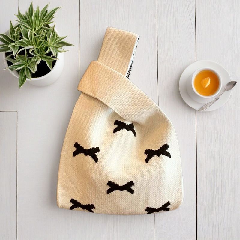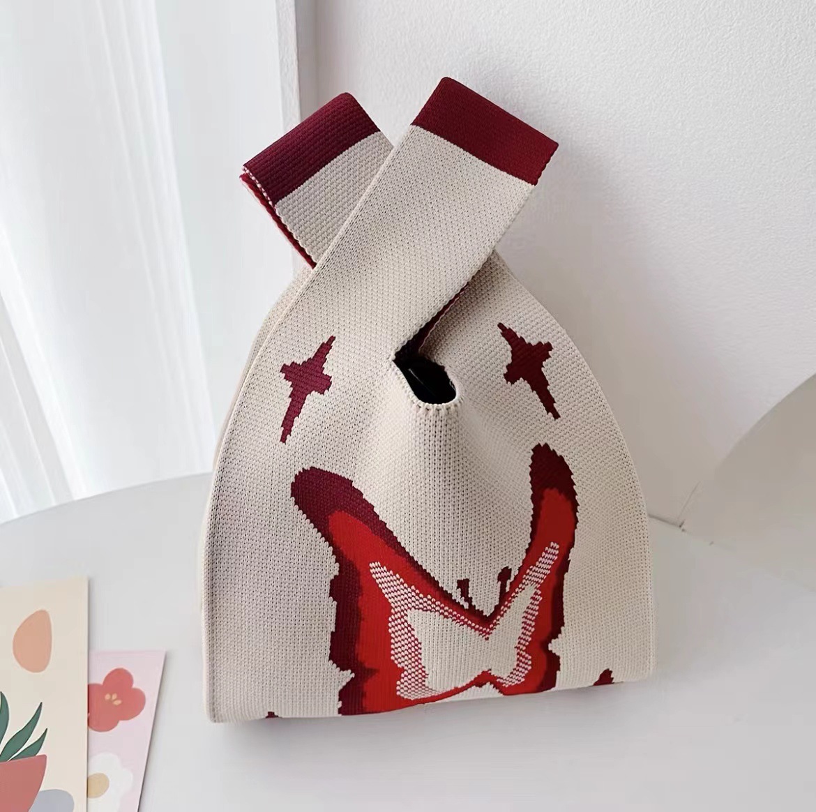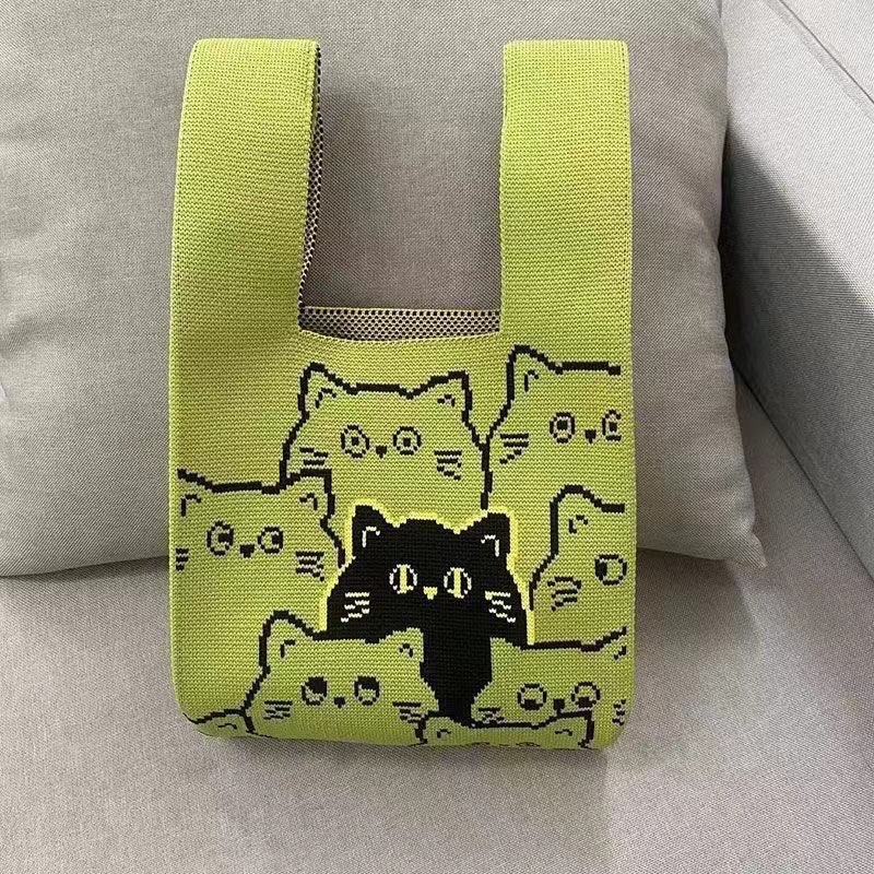 신상품 플라이 니트 가방 여성용 니트 양모 버킷백 일본 및 한국 스타일 다용도 핸드백 캐주얼 토트백 도시락 가방스토어 가기