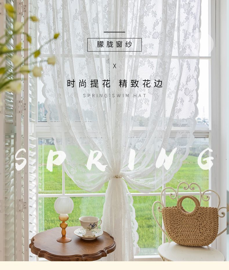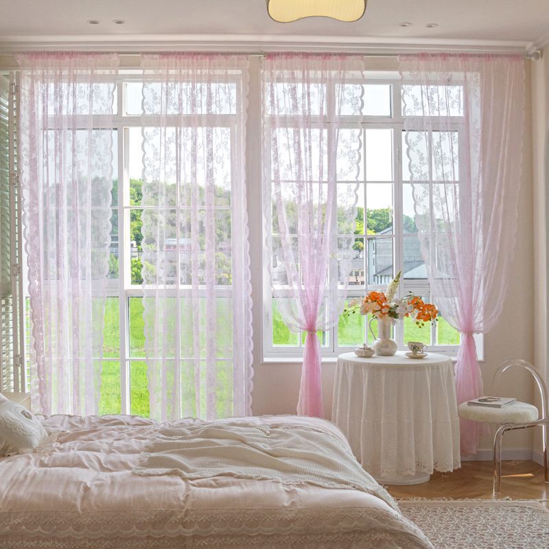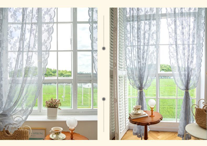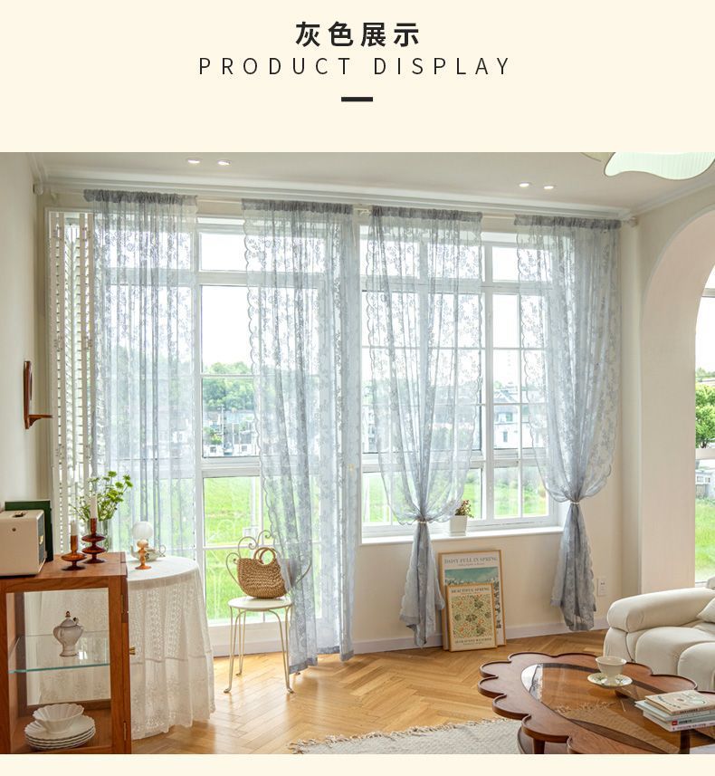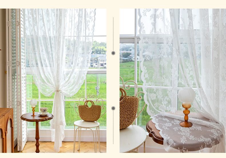 구멍이 없는 한국식 레이스 커튼 거즈 주방 흰색 물결 모양의 가장자리 파티션 장식 벨크로 침실 도어 커튼스토어 가기