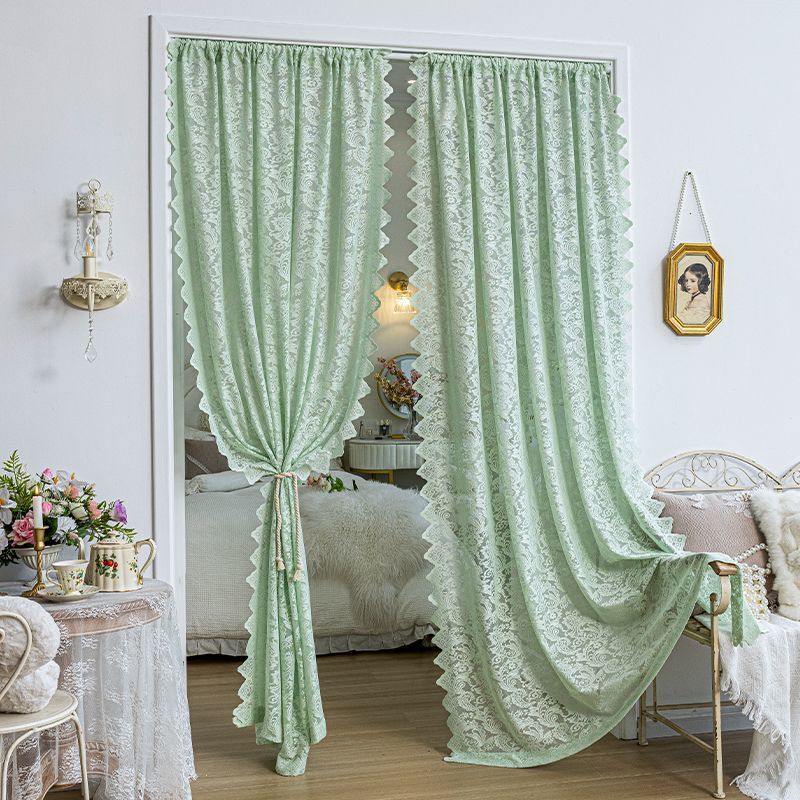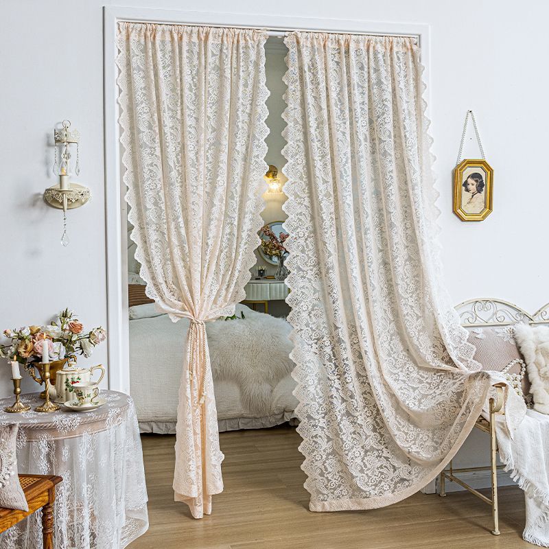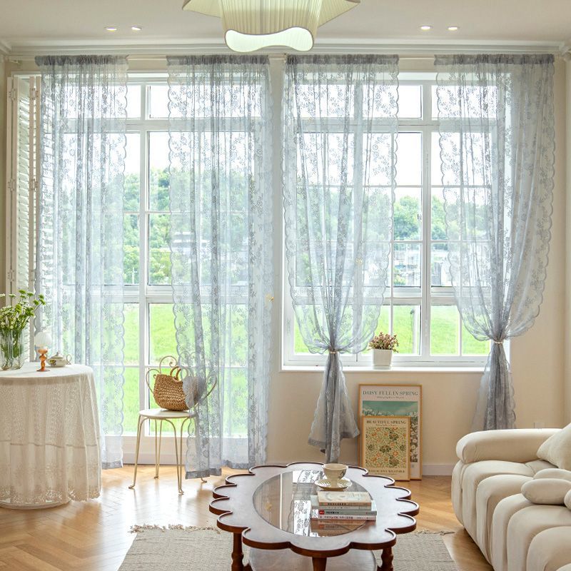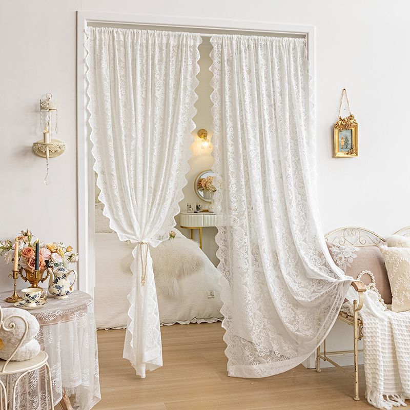 구멍이 없는 한국식 레이스 커튼 거즈 주방 흰색 물결 모양의 가장자리 파티션 장식 벨크로 침실 도어 커튼