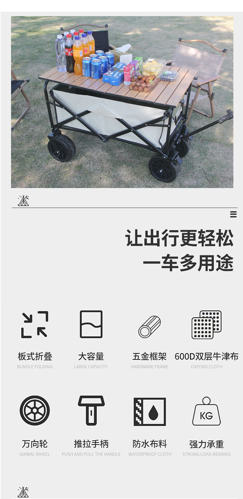 캠핑카 접이식 트롤리 어린이용 리클라이닝 피크닉 캠핑 트롤리 풀 익스프레스 리프팅 테이블 여행 트레일러