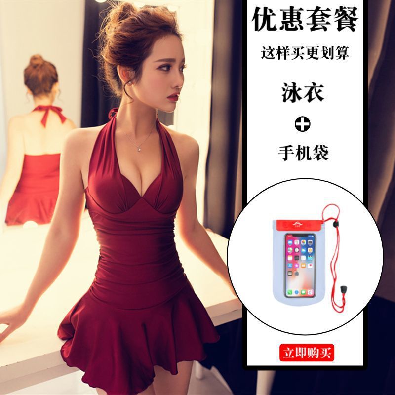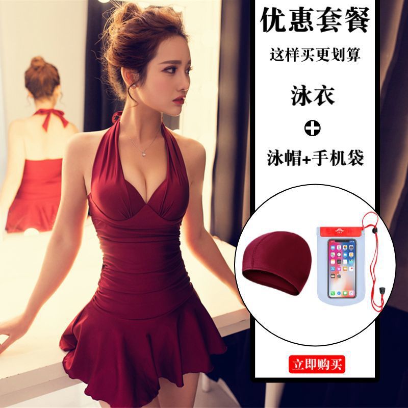 신상 수영복 여성 원피스 스커트 스타일 섹시 배 커버 슬리밍 보수적인 대형 한국식 작은 향기 온천 수영복스토어 가기