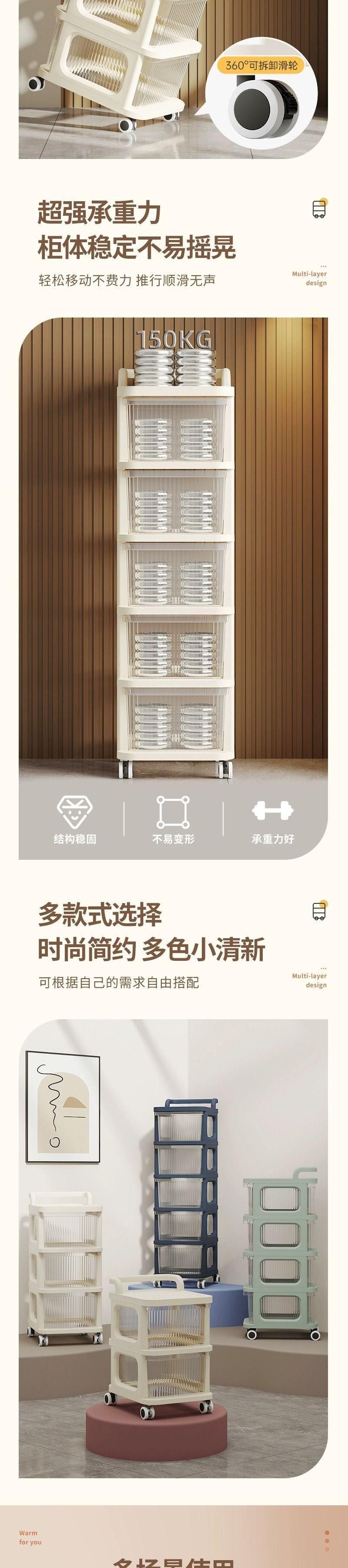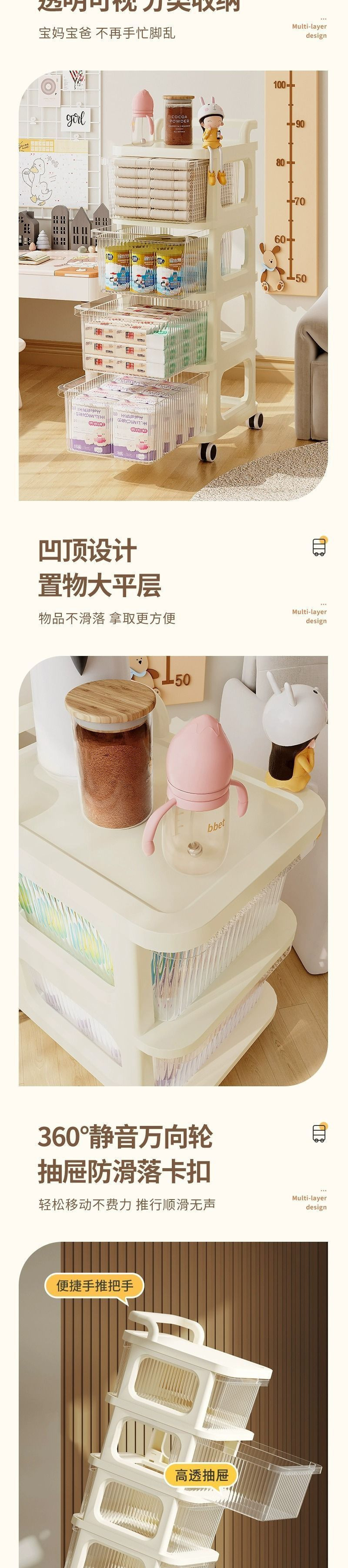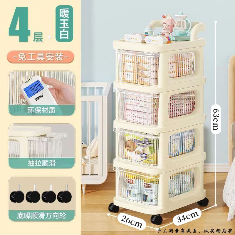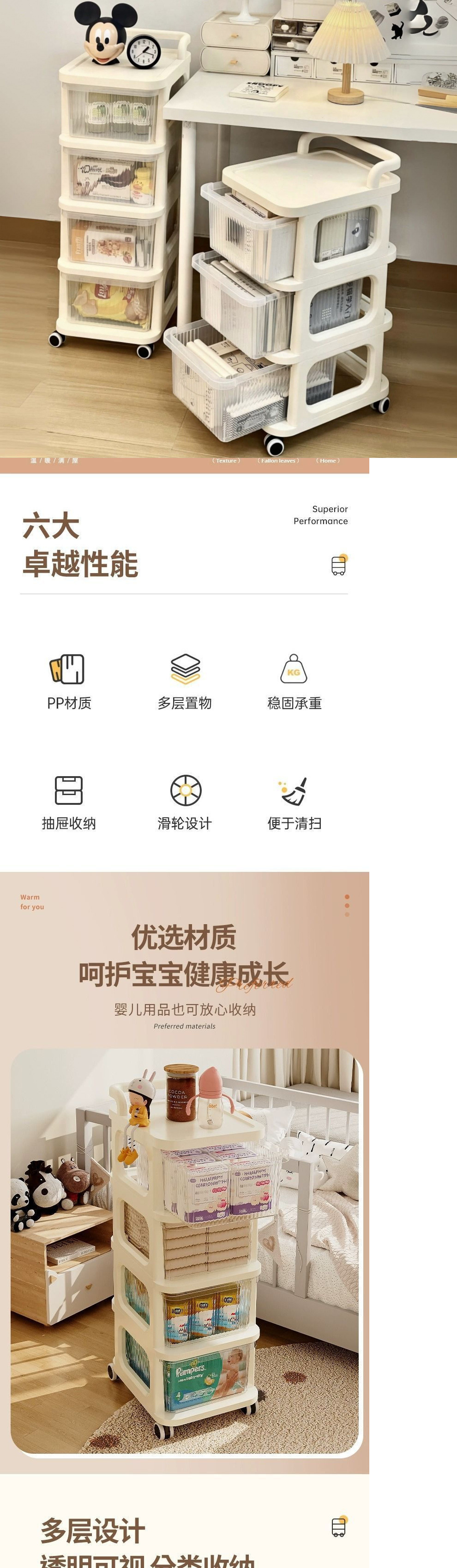트롤리 스낵 서랍형 수납 선반 다층 수납 바닥 스탠딩 모바일 홈 거실 장난감 수납 선반 크림