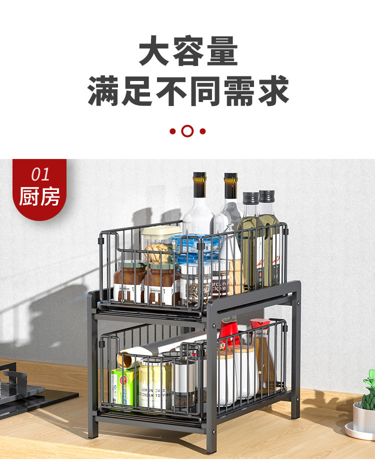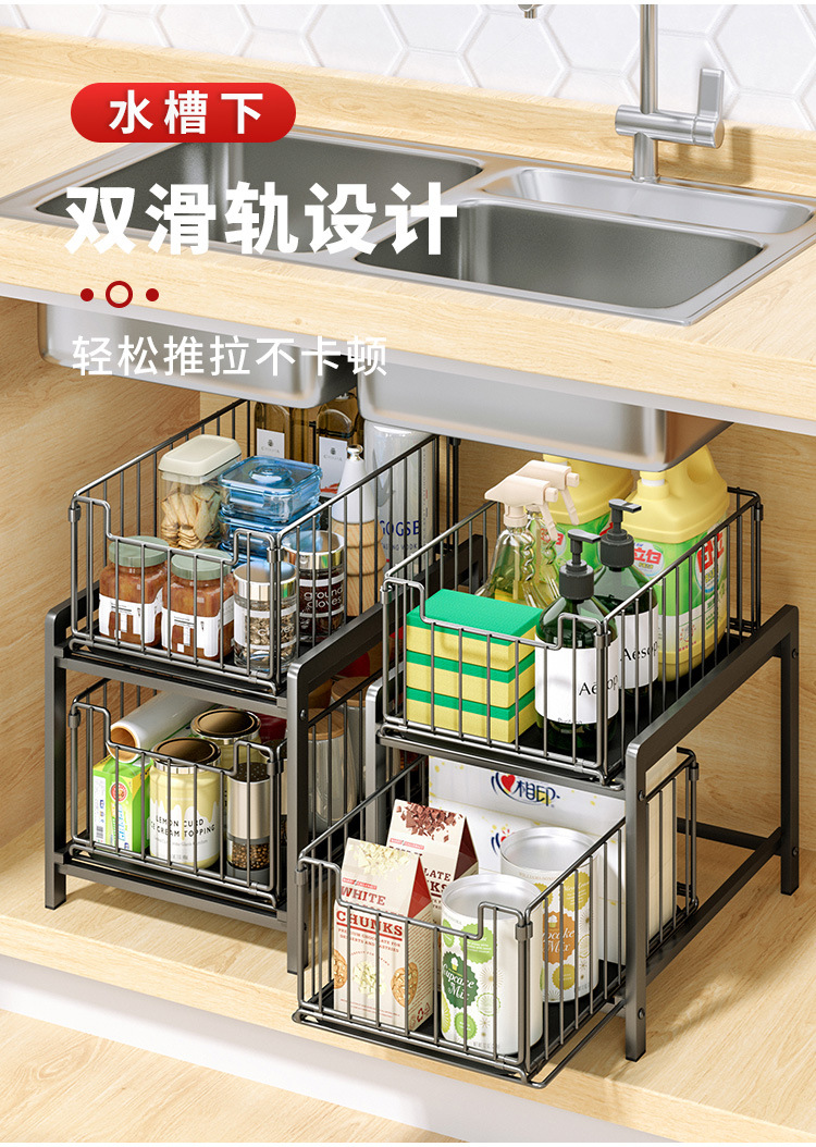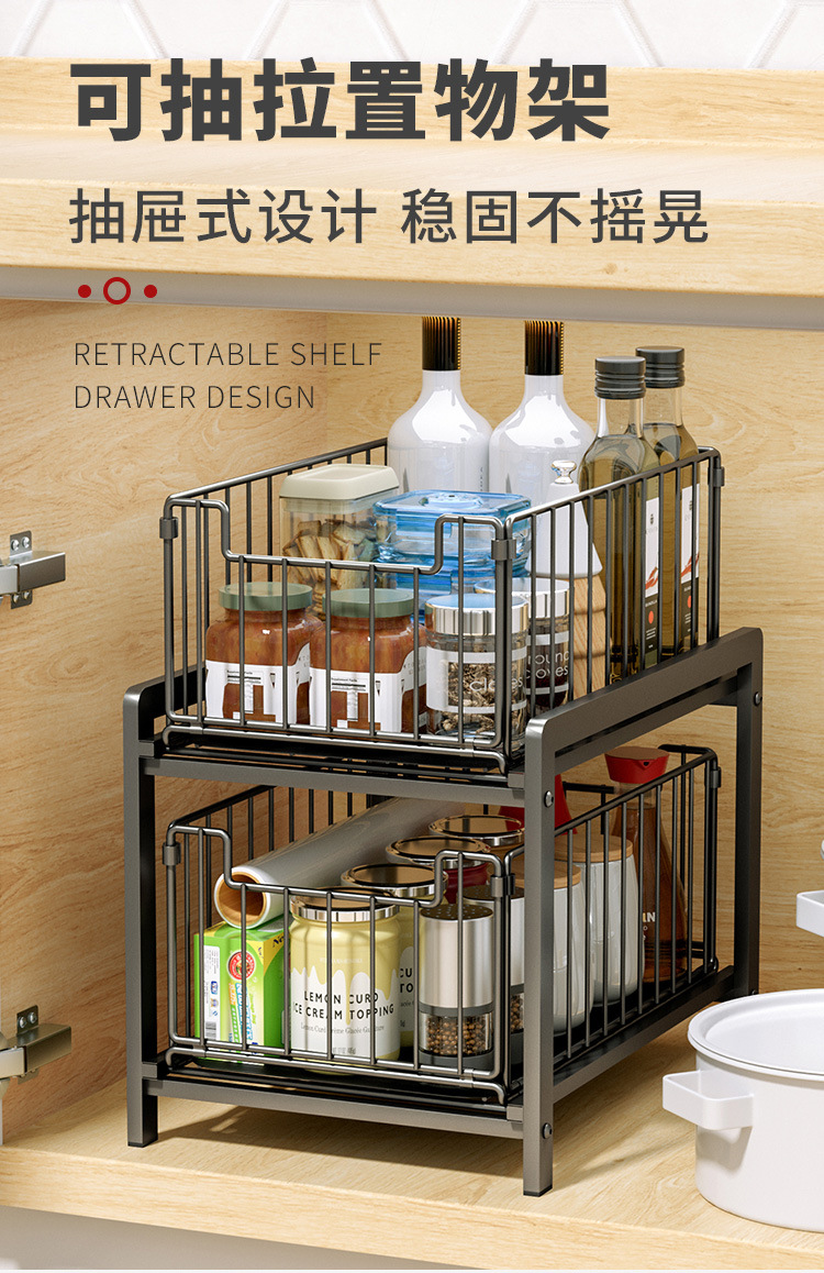 주방 싱크대 아래 맞춤형 풀아웃 수납 선반, 다기능 수납 선반, 욕실 언더 카운터 서랍형 수납 선반