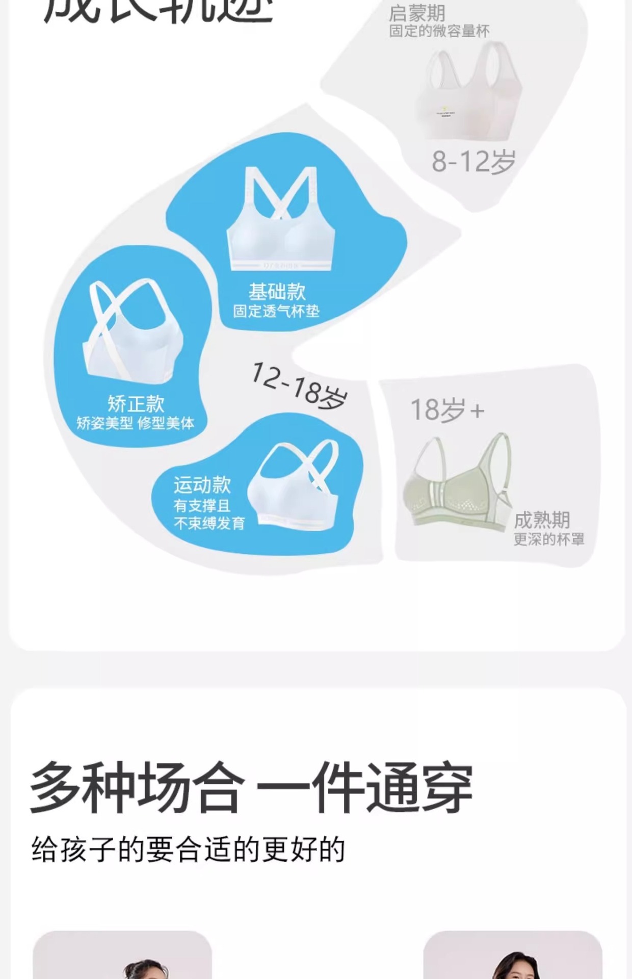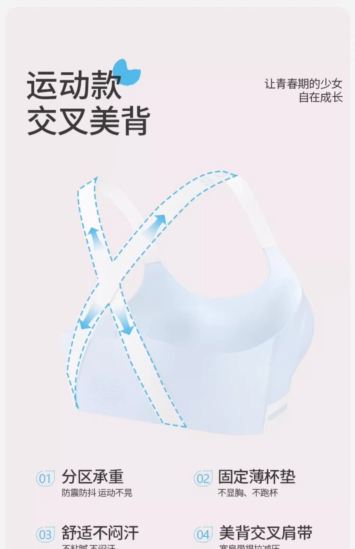 여아 속옷, 여학생, 중학교 발달 2단계 튜브탑 랩 브라, 아동 스포츠 충격 방지 조끼스토어 가기