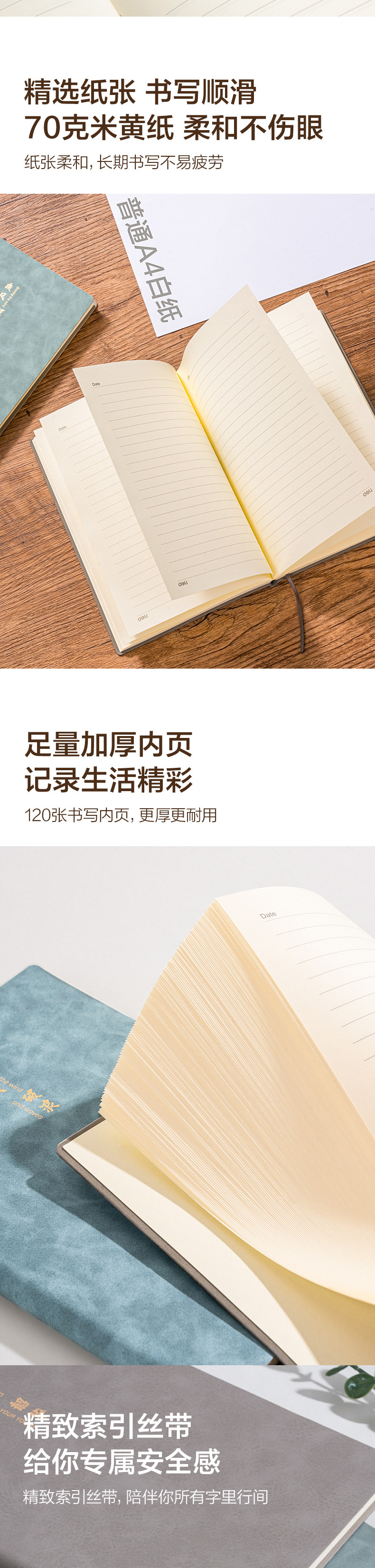 델리 BP103 양가죽 메모장 a5 부드러운 가죽 비즈니스 사무실 회의 기록부 가죽 표면 두꺼운 120매스토어 가기