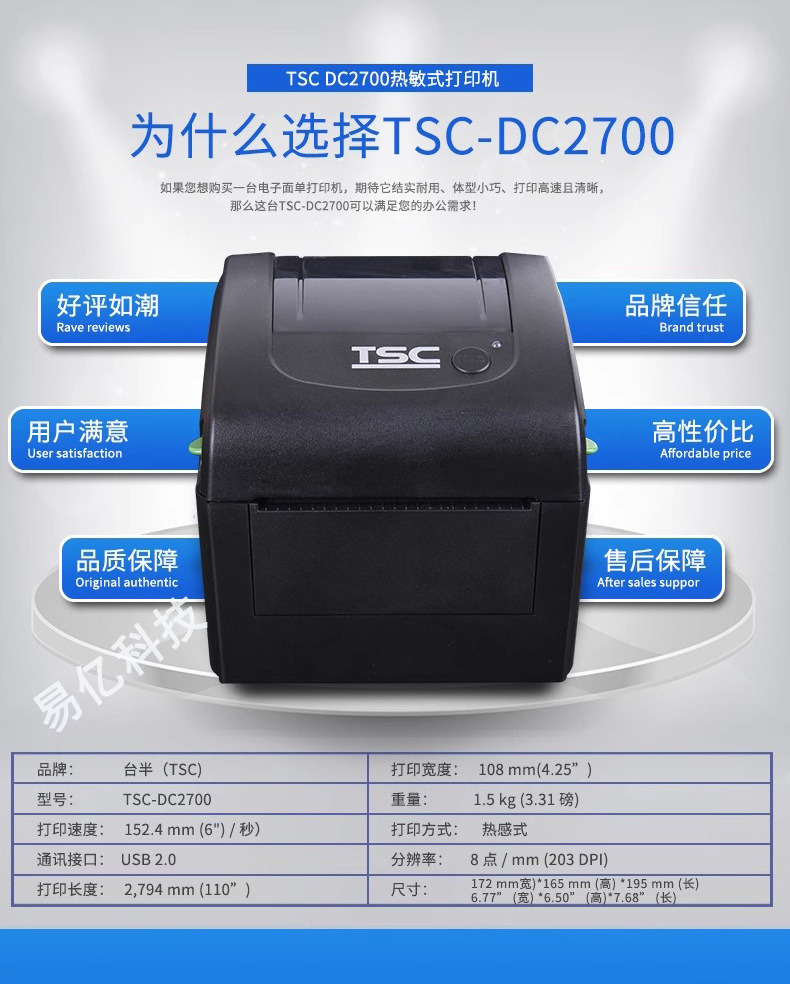 TSC DC2700 열전사 라벨 프린터 식품 병원 코드 프린터 바코드 QR코드 스티커 바코드
