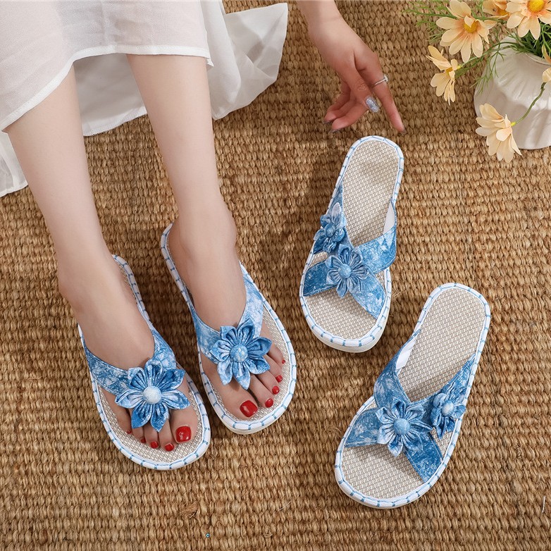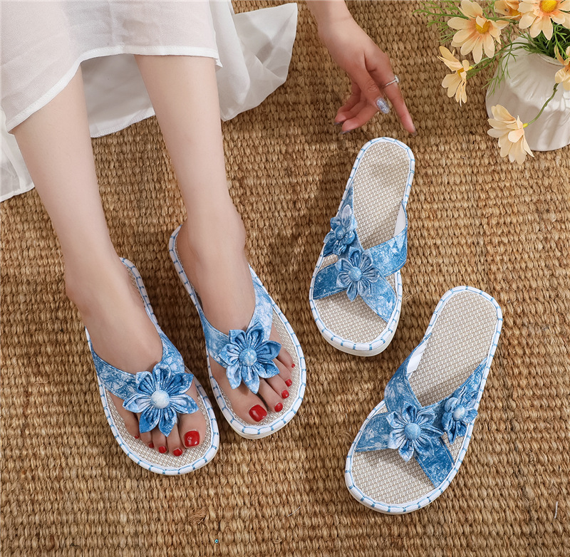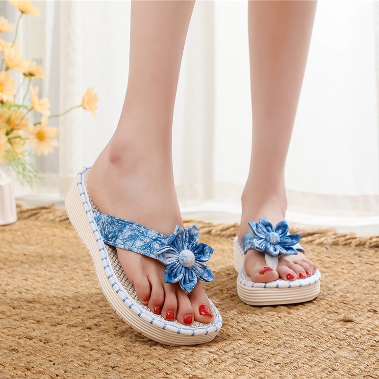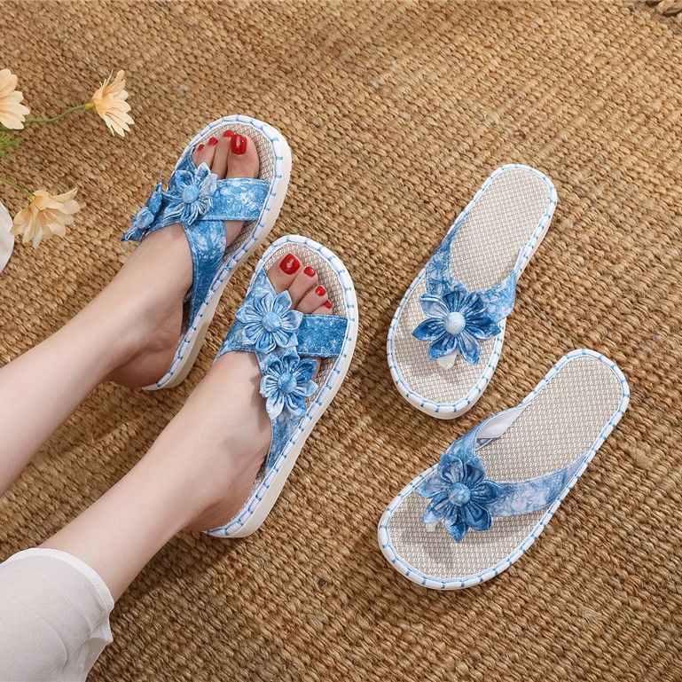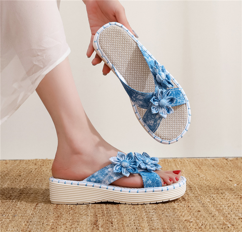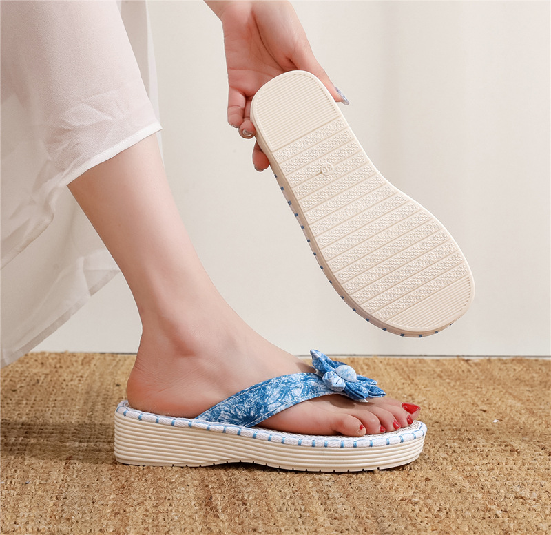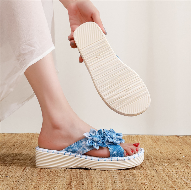 여름 새로운 타이 염색 여성 슬리퍼, 여성용 편안한 두꺼운 밑창 오픈 발가락 해변 신발, 꽃, 해변 여행, 소녀 슬리퍼스토어 가기