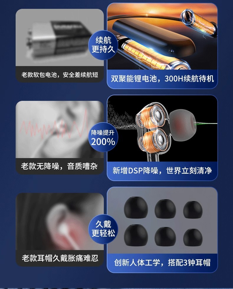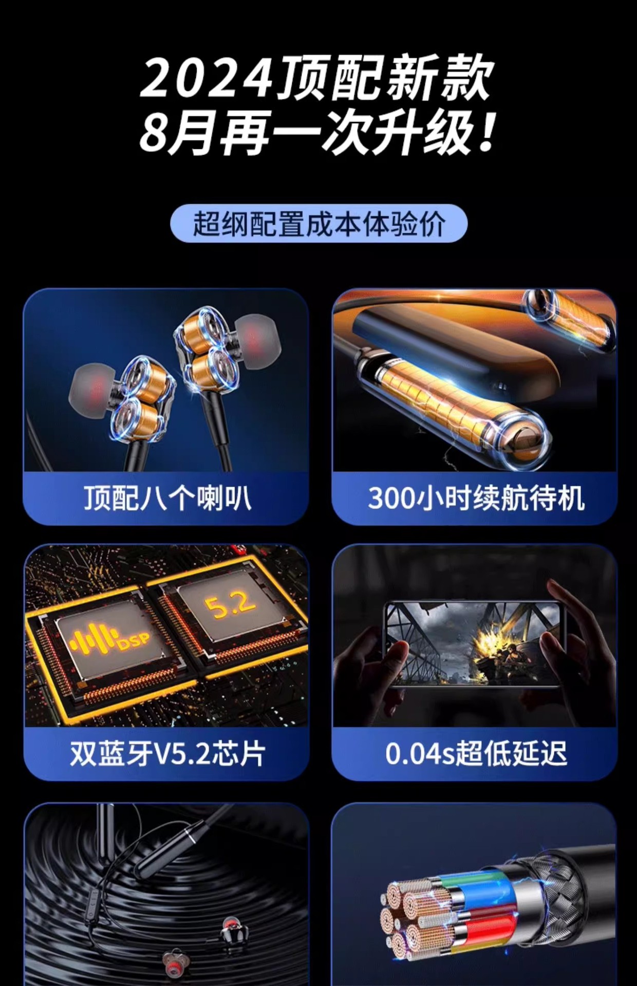 블루투스 헤드셋, 목걸이형, 매우 긴 배터리 수명, 목걸이형, 대용량 배터리, 무선 스포츠 및 러닝, 고급형, 새로운 스타일, 고품질스토어 가기