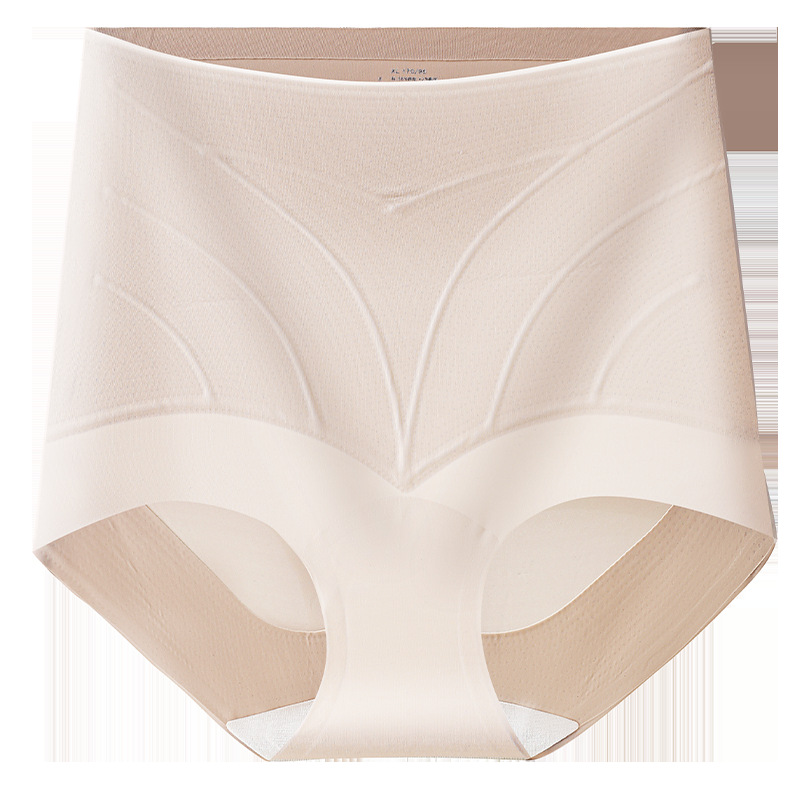 여성용 속옷, 아이스 실크, 무봉제, 얇고 통기성이 좋으며 피부 친화적인 배 조절 반바지, 실크 바닥 가랑이 젤리 스트립 하이웨이스트 팬티