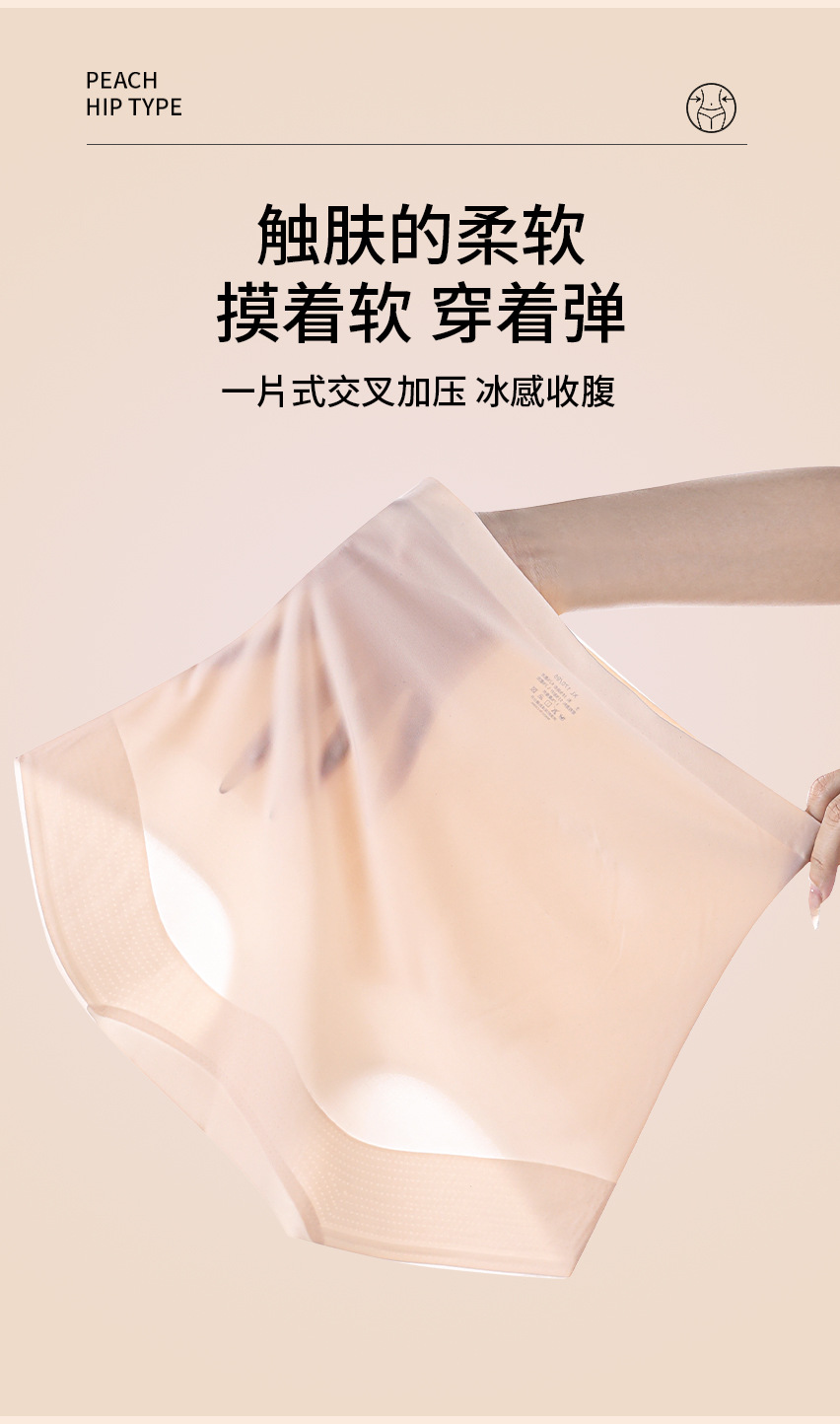 여성용 속옷, 아이스 실크, 무봉제, 얇고 통기성이 좋으며 피부 친화적인 배 조절 반바지, 실크 바닥 가랑이 젤리 스트립 하이웨이스트 팬티스토어 가기