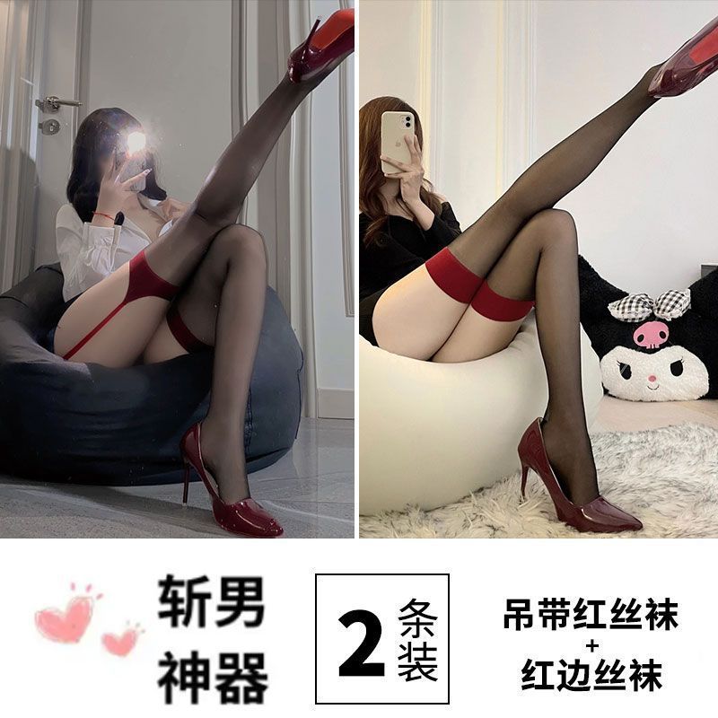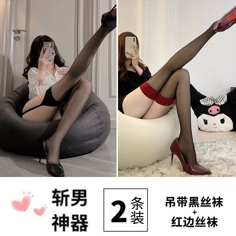 섹시한 멜빵 일체형 양말, 순수한 욕망 또는 매혹적인 블랙 실크 롱 튜브 오픈 파일, 탈착 불가, 초박형 jk 유니폼, 에로틱