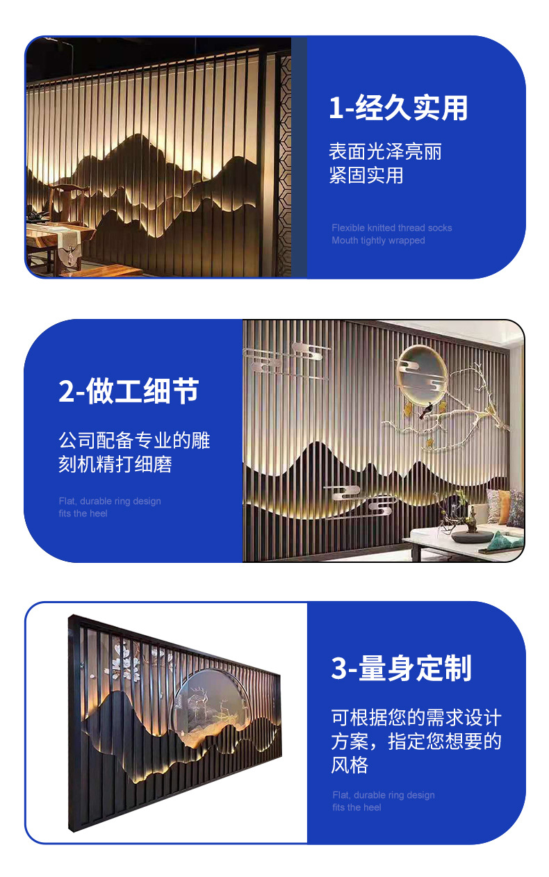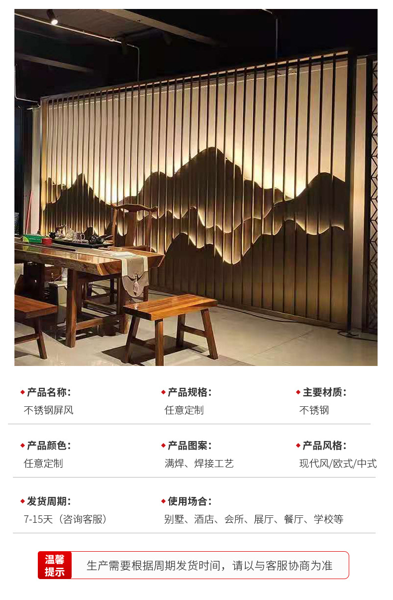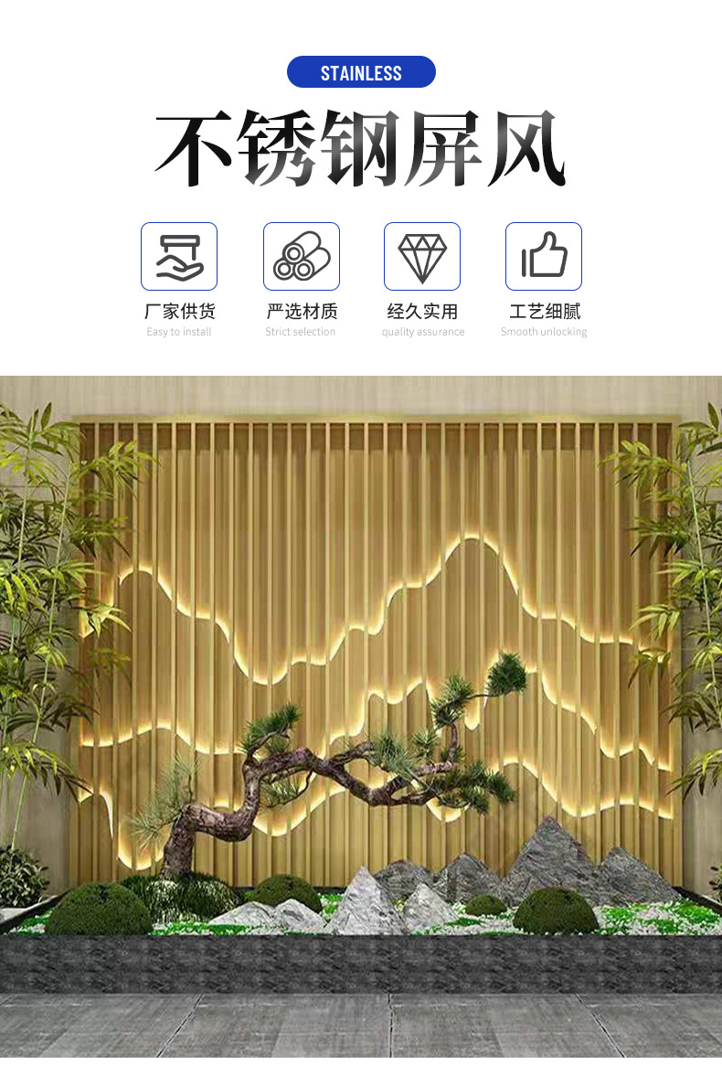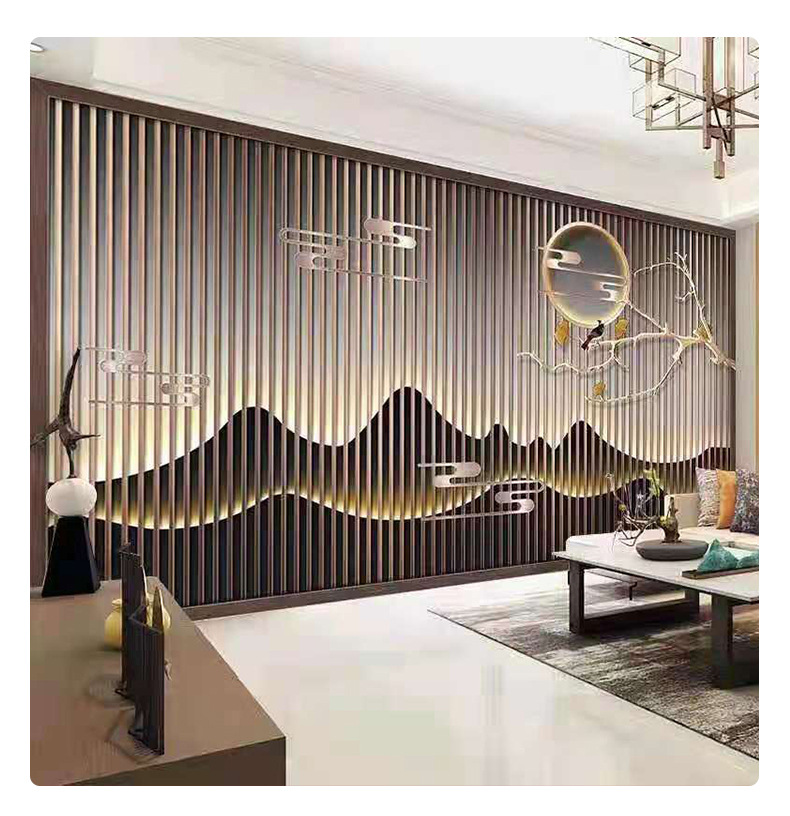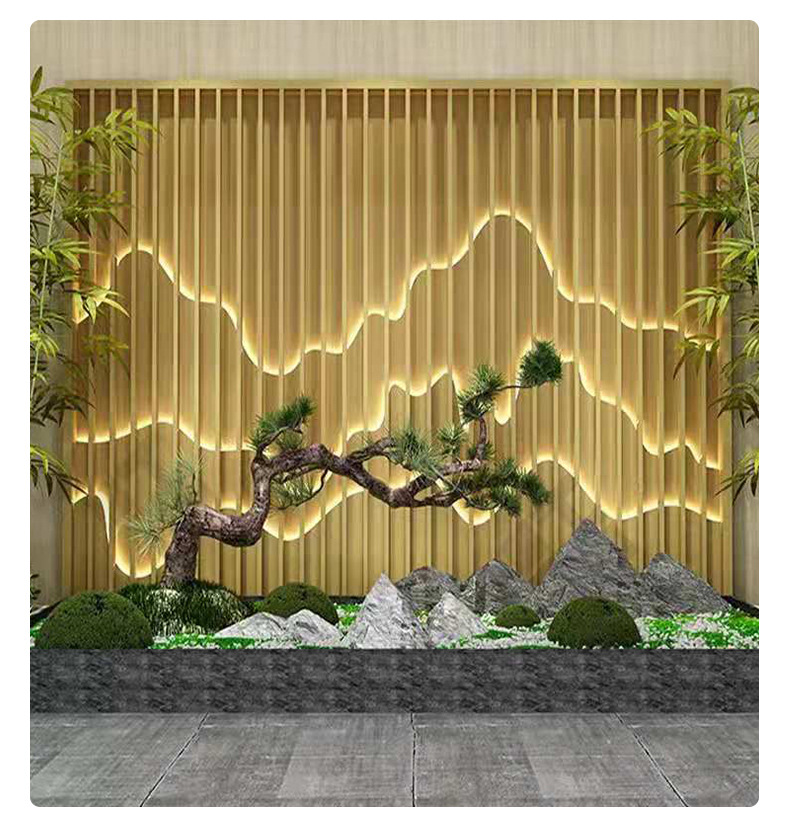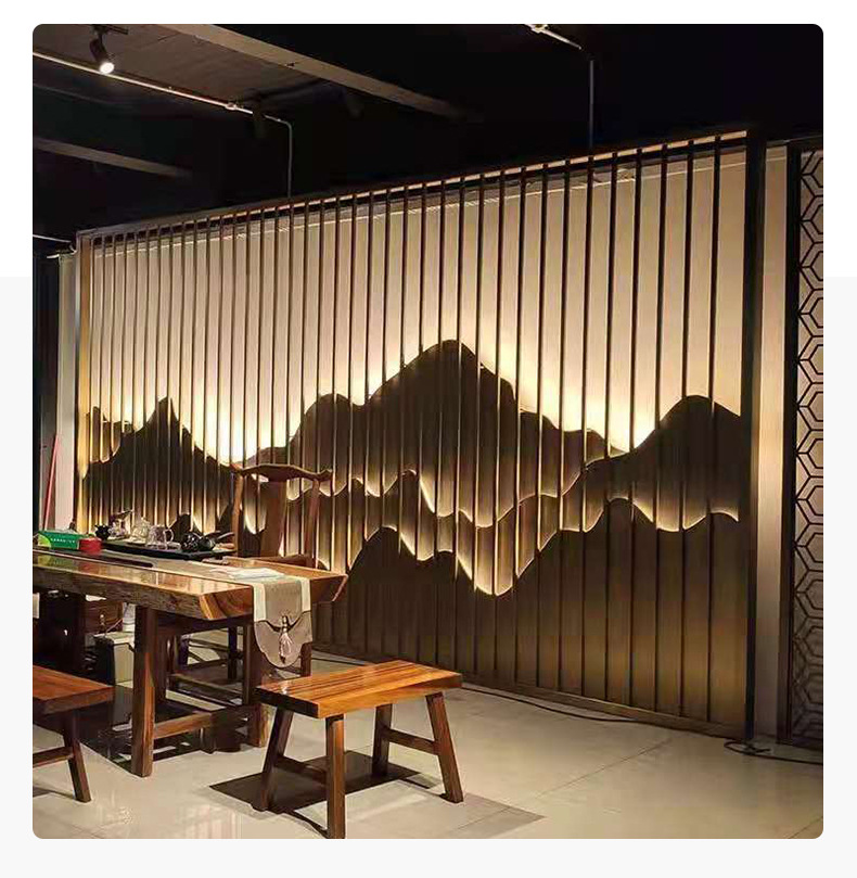조명과 배경 벽이 있는 스테인레스 스틸 스크린 파티션 야외 야외 안뜰 빌라 금속 마당 석가문 벽스토어 가기