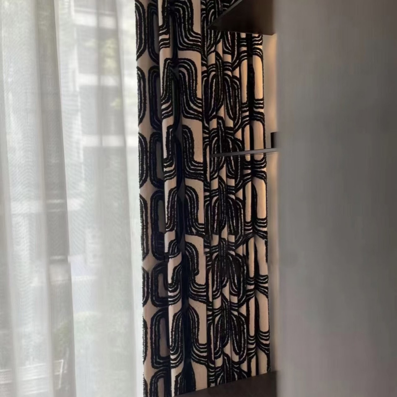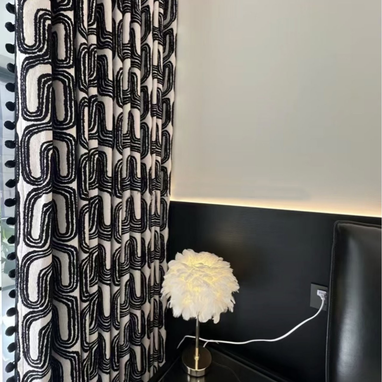 북유럽 현대 이탈리아 스타일 빛 럭셔리 커튼 프랑스 중세 스타일 거실 흑백 기하학 캐시미어 셔닐 자카드 침실