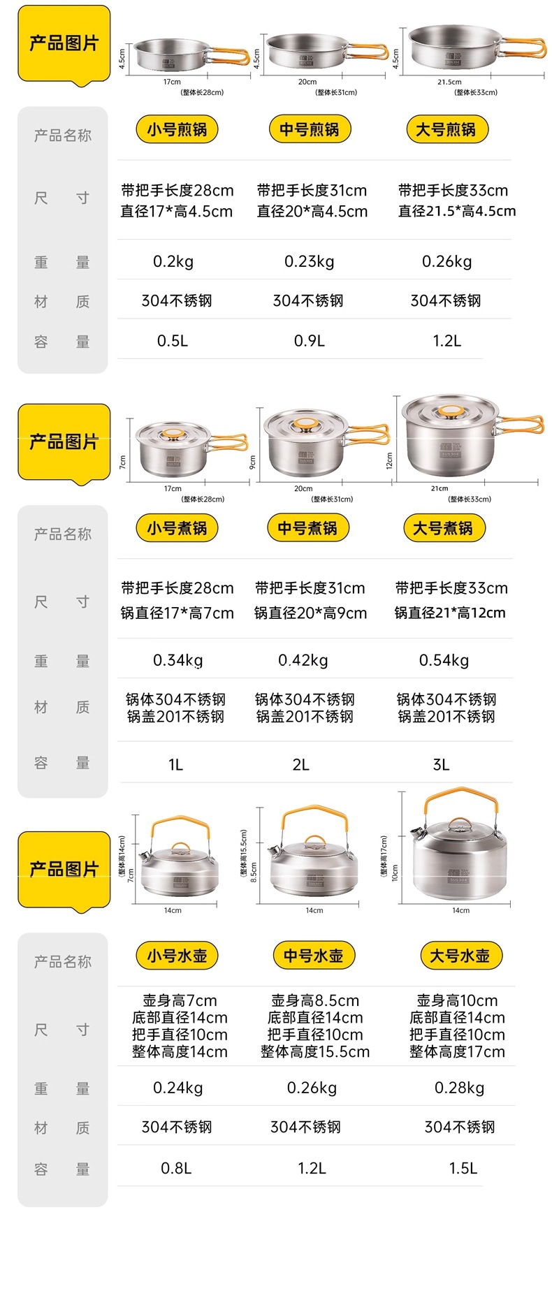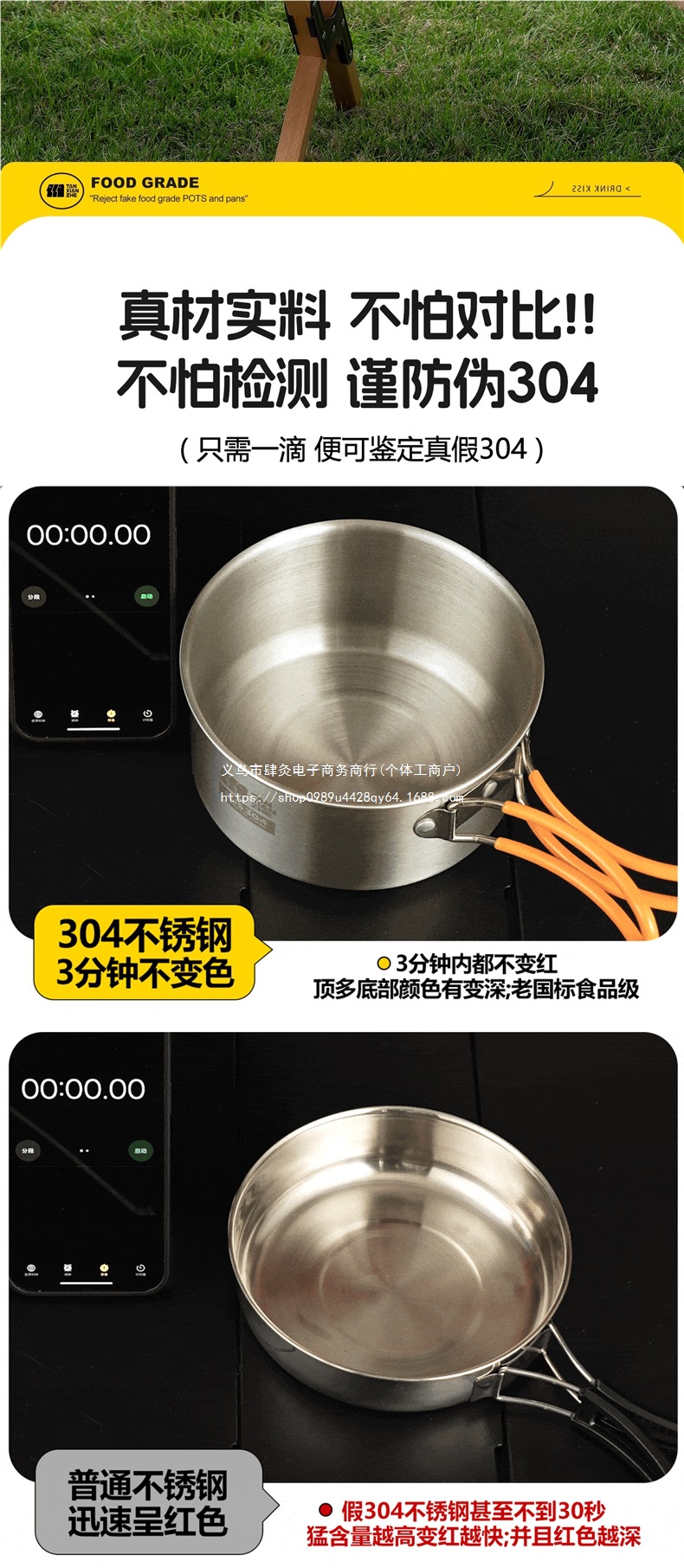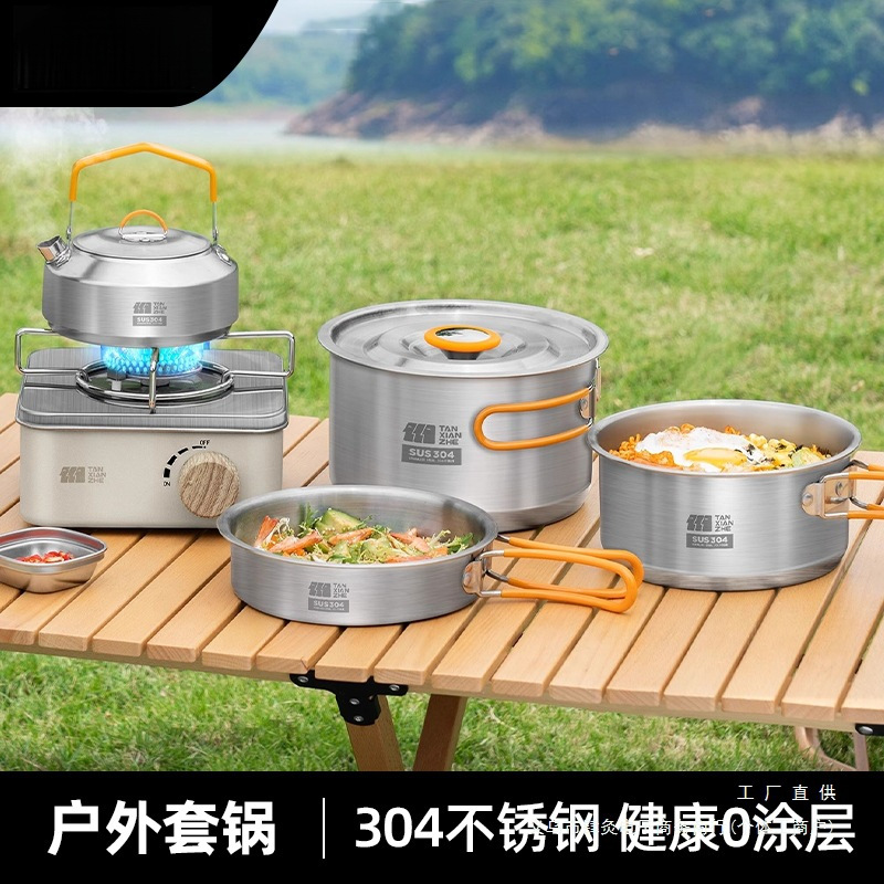 Explorer 304 스테인레스 스틸 야외 냄비 캠핑 피크닉 냄비 카세트 스토브 냄비 주전자 풀 세트 장비 및 용품
