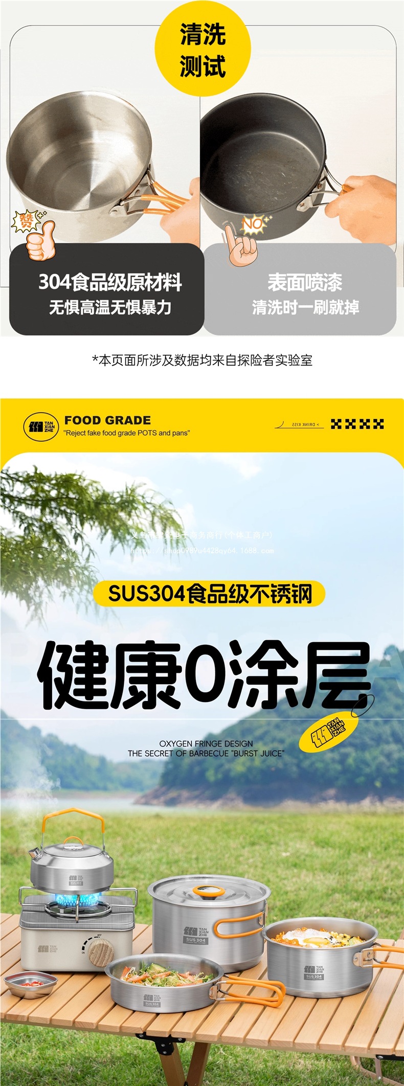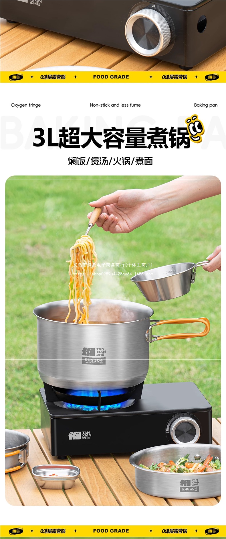 Explorer 304 스테인레스 스틸 야외 냄비 캠핑 피크닉 냄비 카세트 스토브 냄비 주전자 풀 세트 장비 및 용품스토어 가기