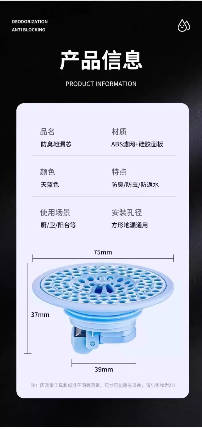 범용 바닥 배수구 탈취제, 욕실 하수구, 방충, 막힘 방지, 역방향 냄새 방지, 빠른 배수 바닥 배수구 커버