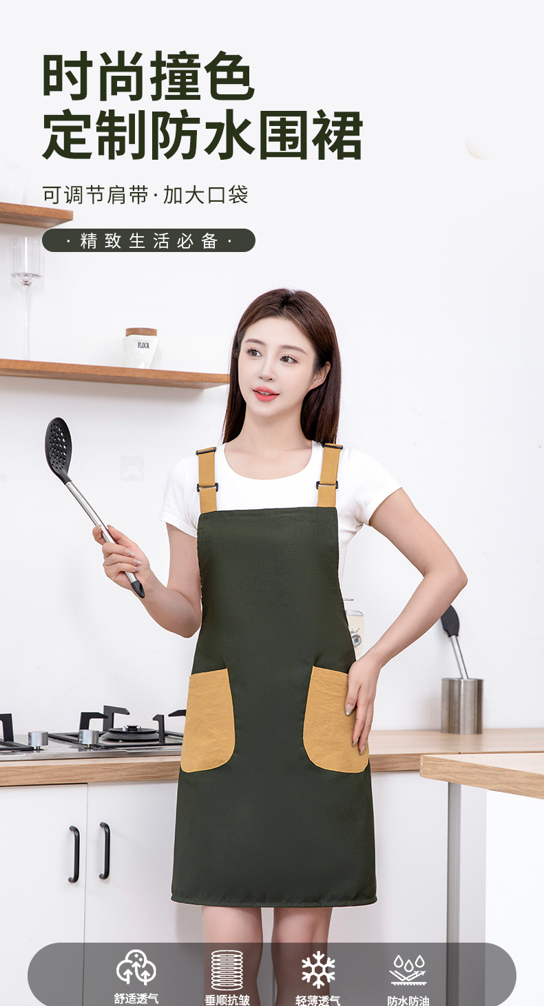 • 대비색상 조절 가능한 어깨끈 앞치마-그린