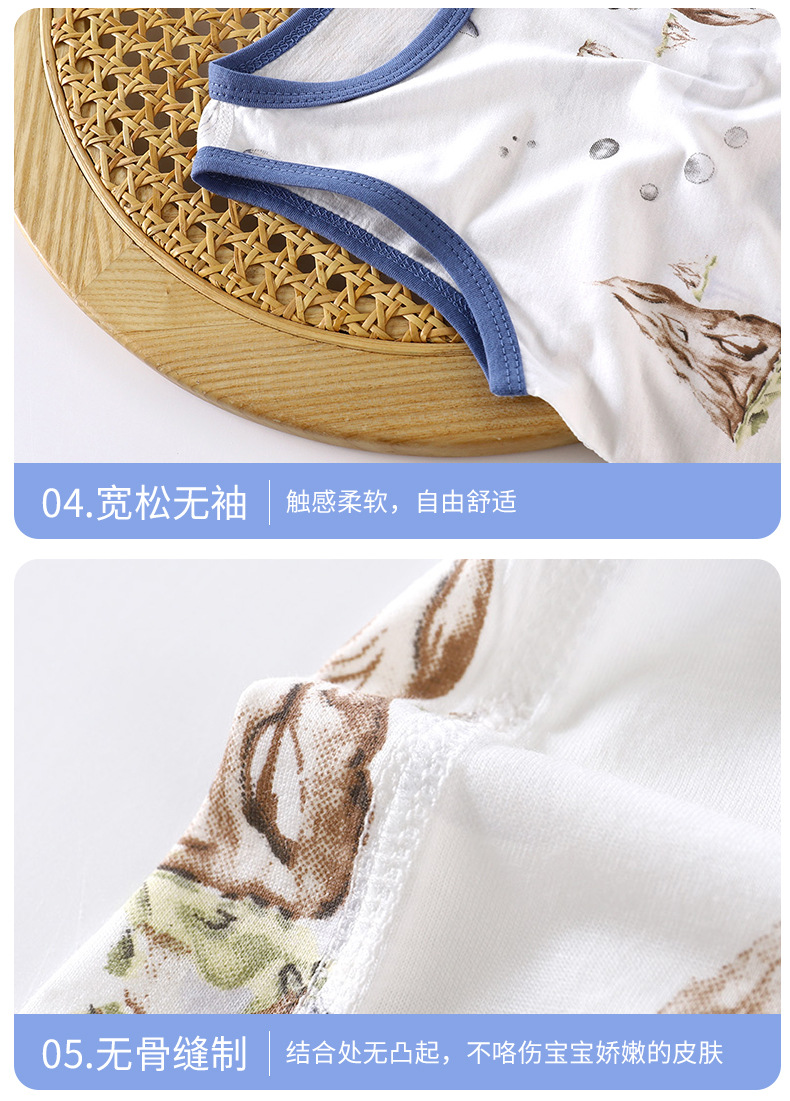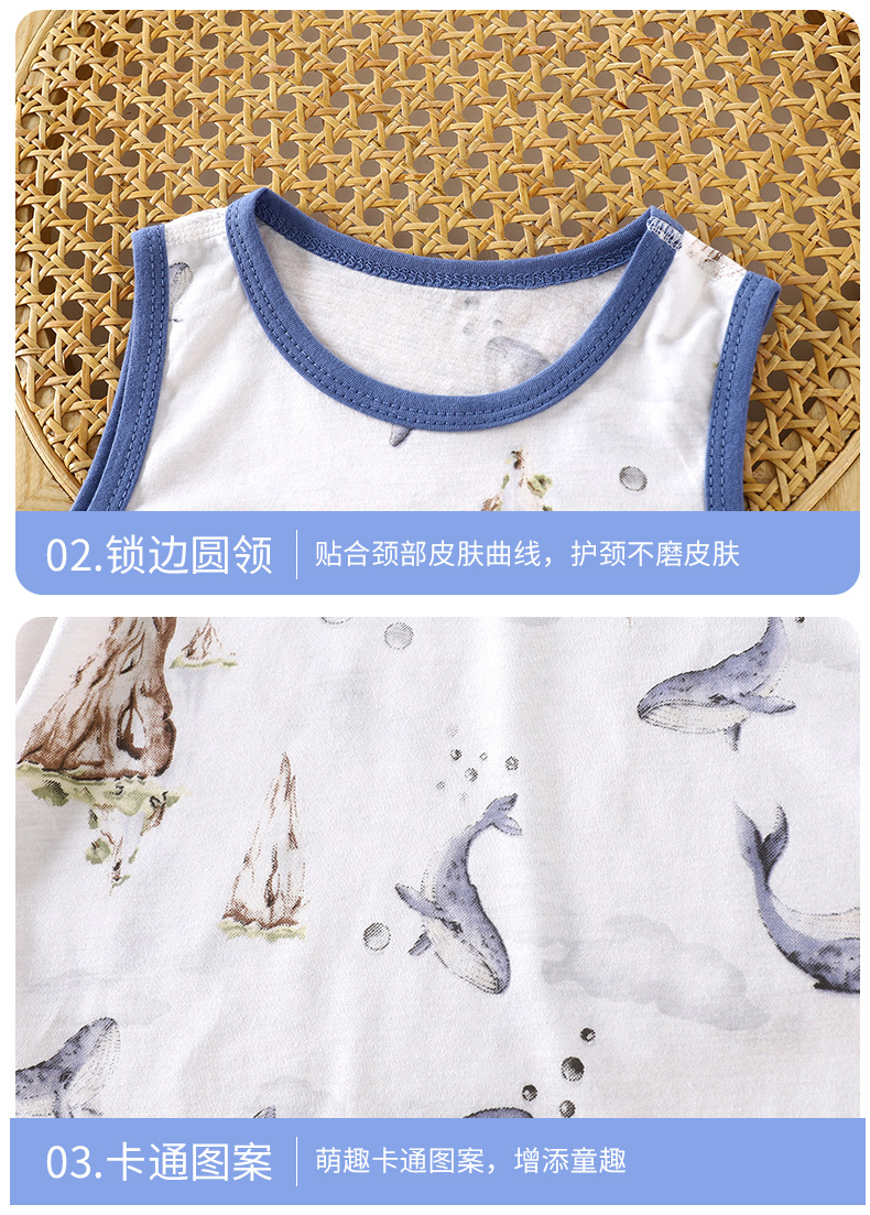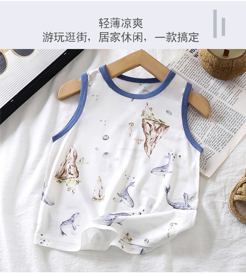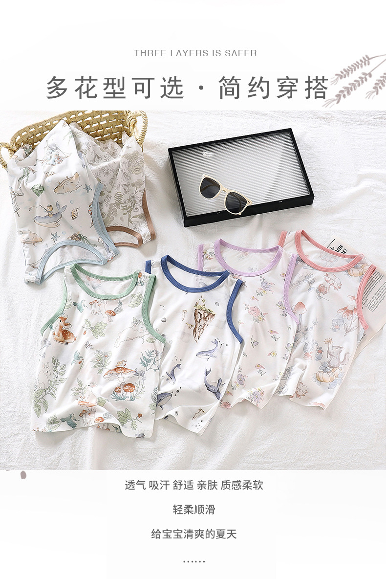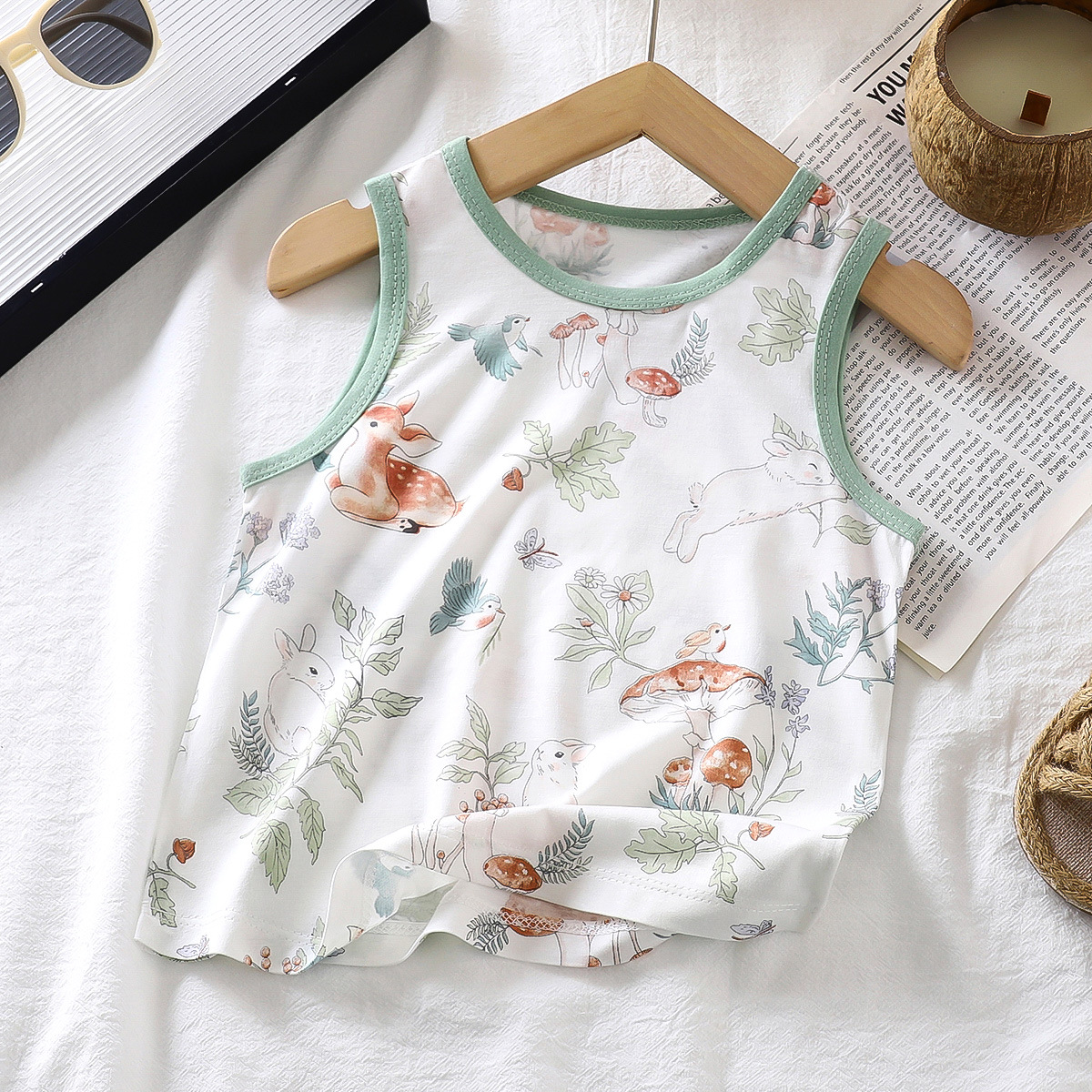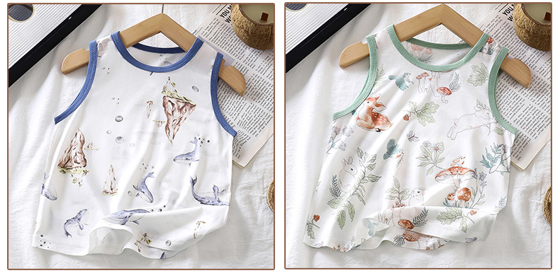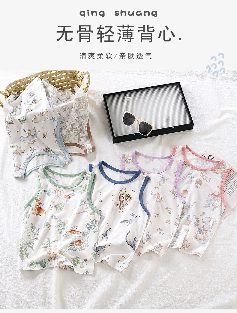 Lyocell 어린이용 뼈없는 가볍고 시원한 조끼 느슨한 민소매 여름 만화 멜빵 바닥 라운드 넥 캐주얼