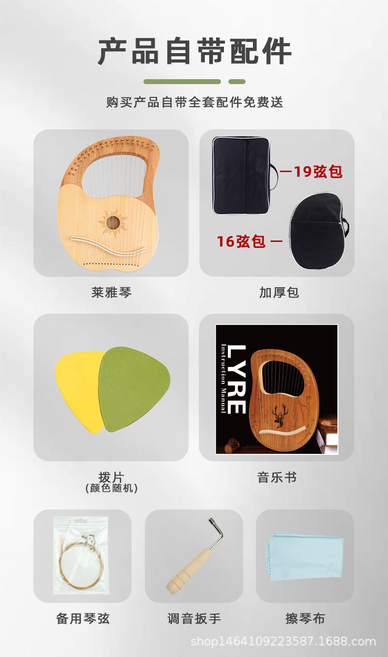 19현 라이어 하프, 마호가니 16현 소형 하프, 21현 라이어 휴대용 초보자 하프, 국경 간 전용스토어 가기