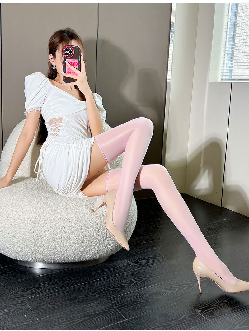 섹시한 블랙 스타킹 1D 무광택 화이트 스타킹 윤기나는 롱 스타킹 여성 여름용 초박형 무릎 위 스타킹 Sy