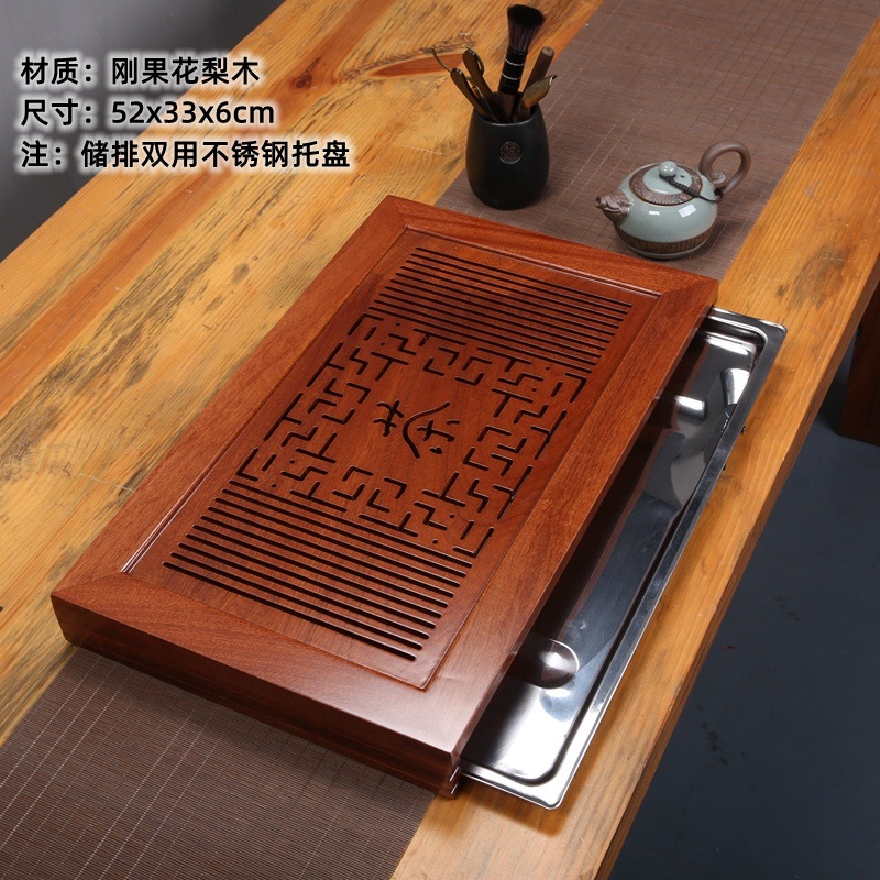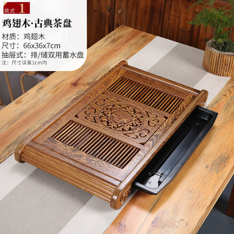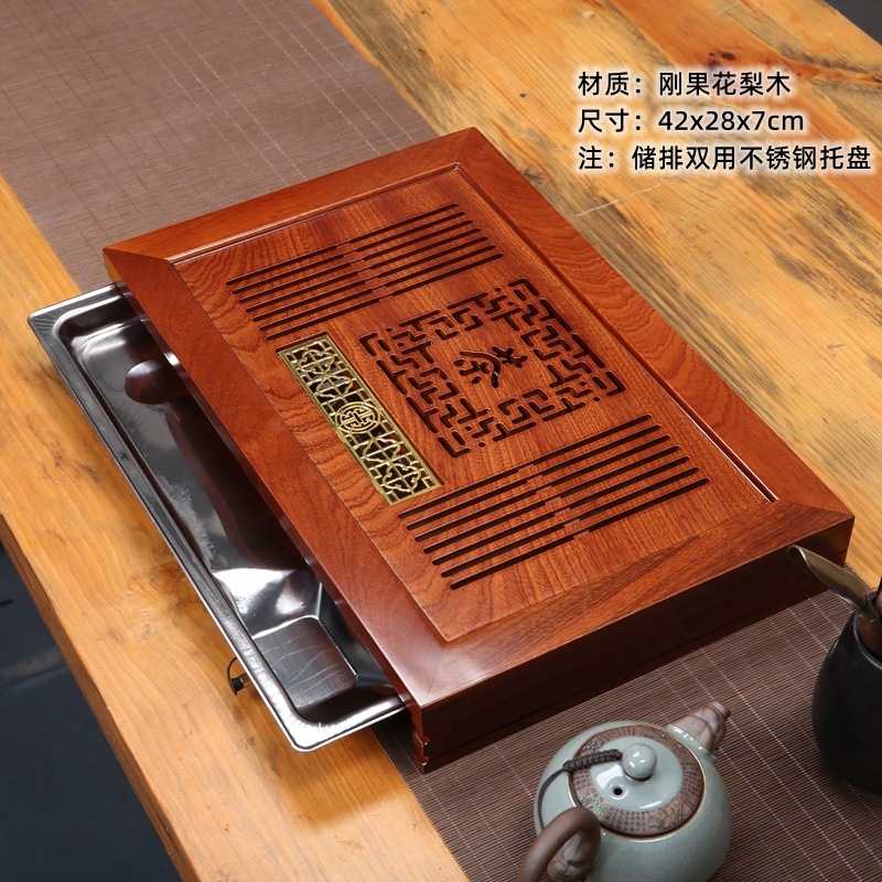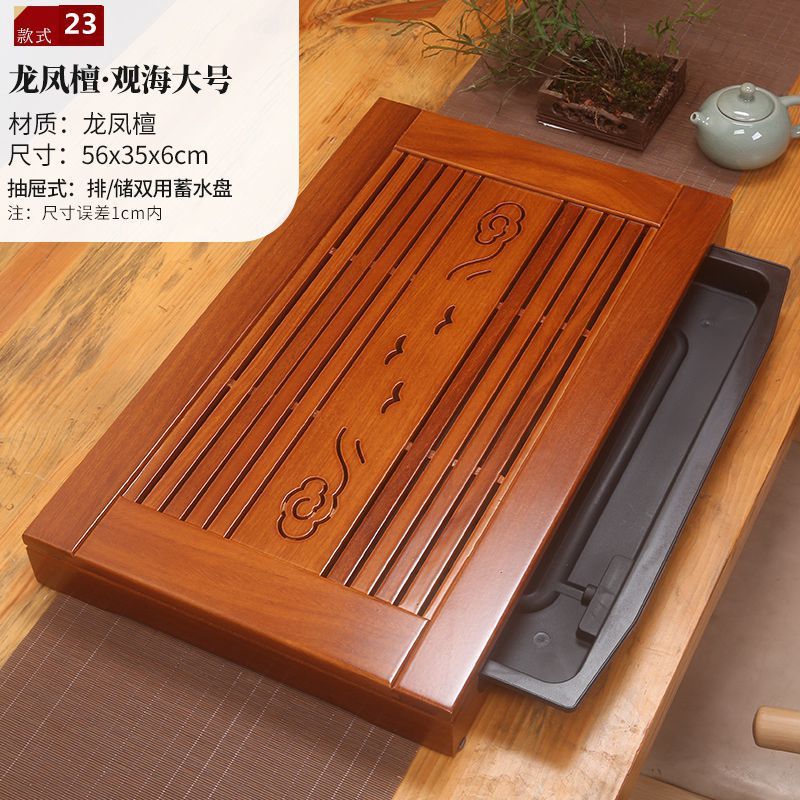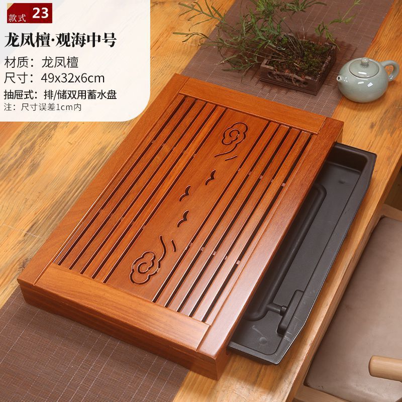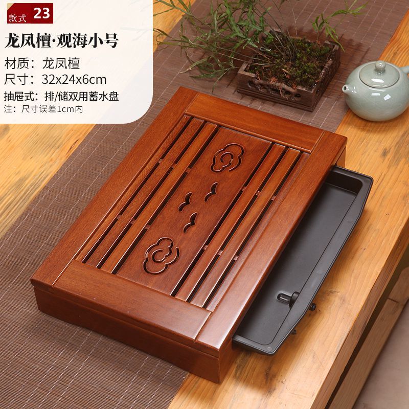 윙우드 로즈우드 원목 대형 티 트레이 서랍형 티 트레이 물 저장 및 배수 가정용 트레이 쿵푸 티 세트 티 테이블
