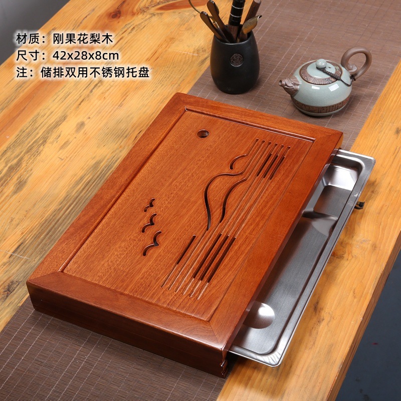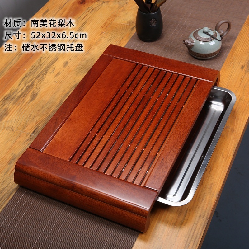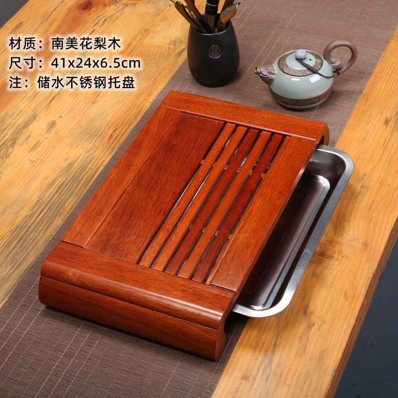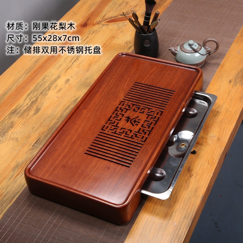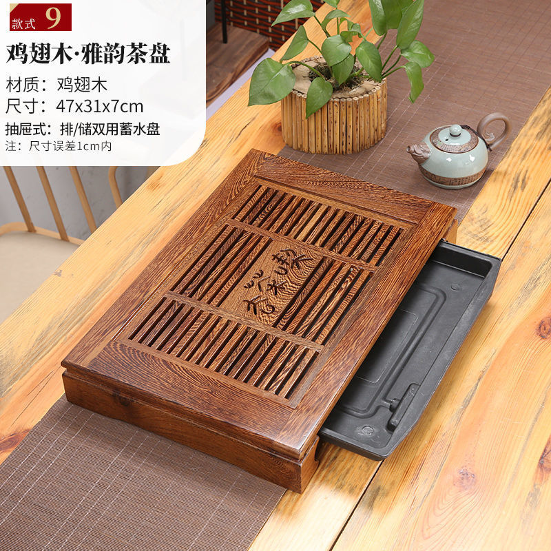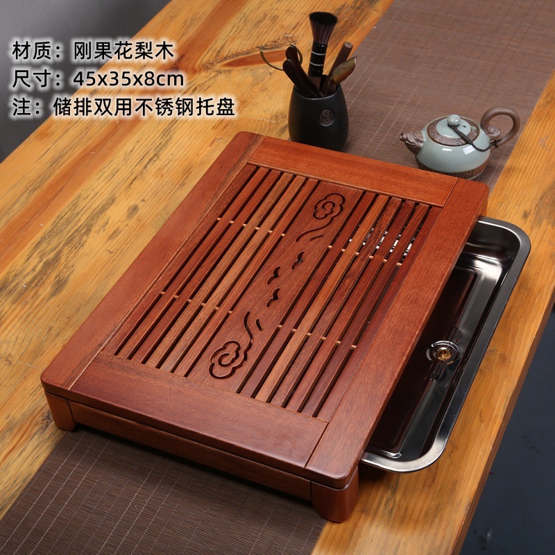윙우드 로즈우드 원목 대형 티 트레이 서랍형 티 트레이 물 저장 및 배수 가정용 트레이 쿵푸 티 세트 티 테이블