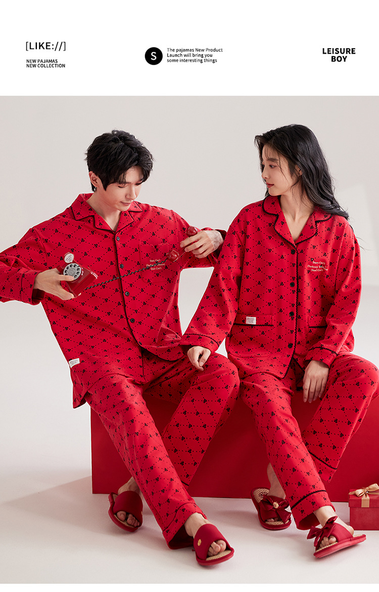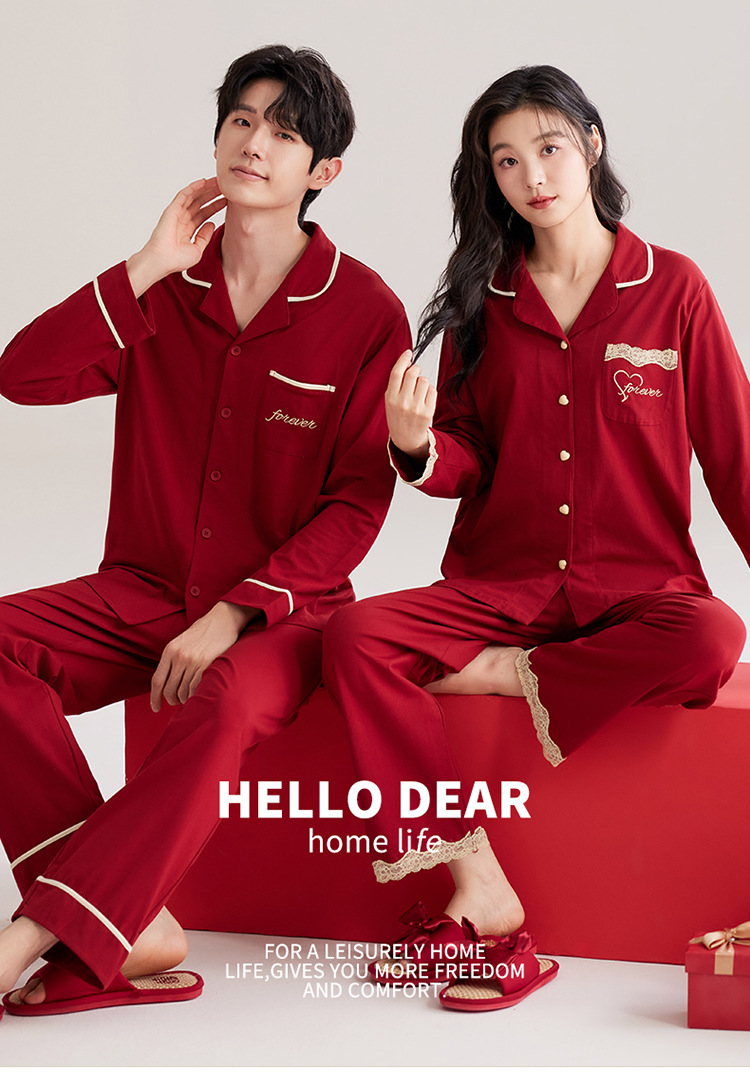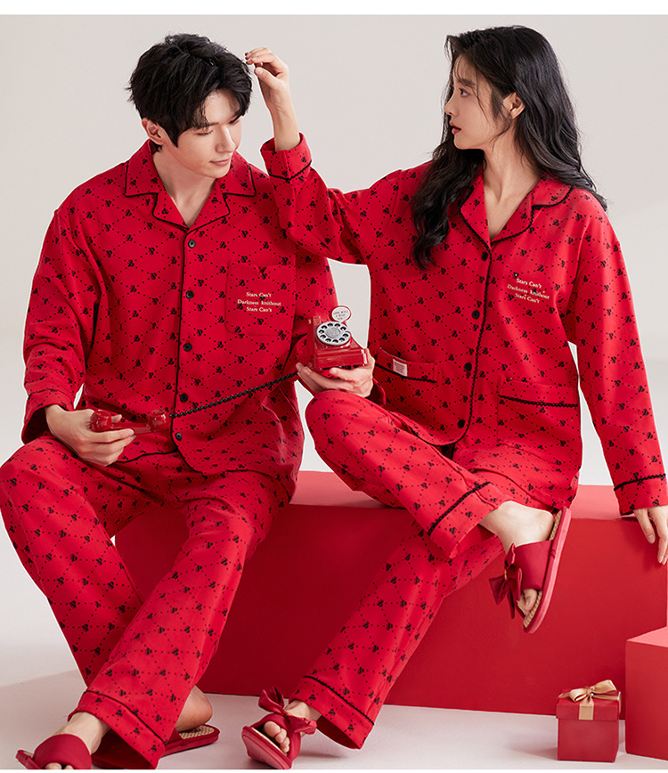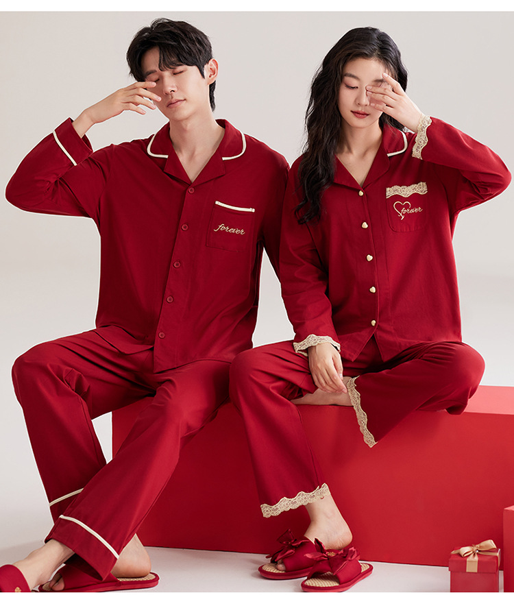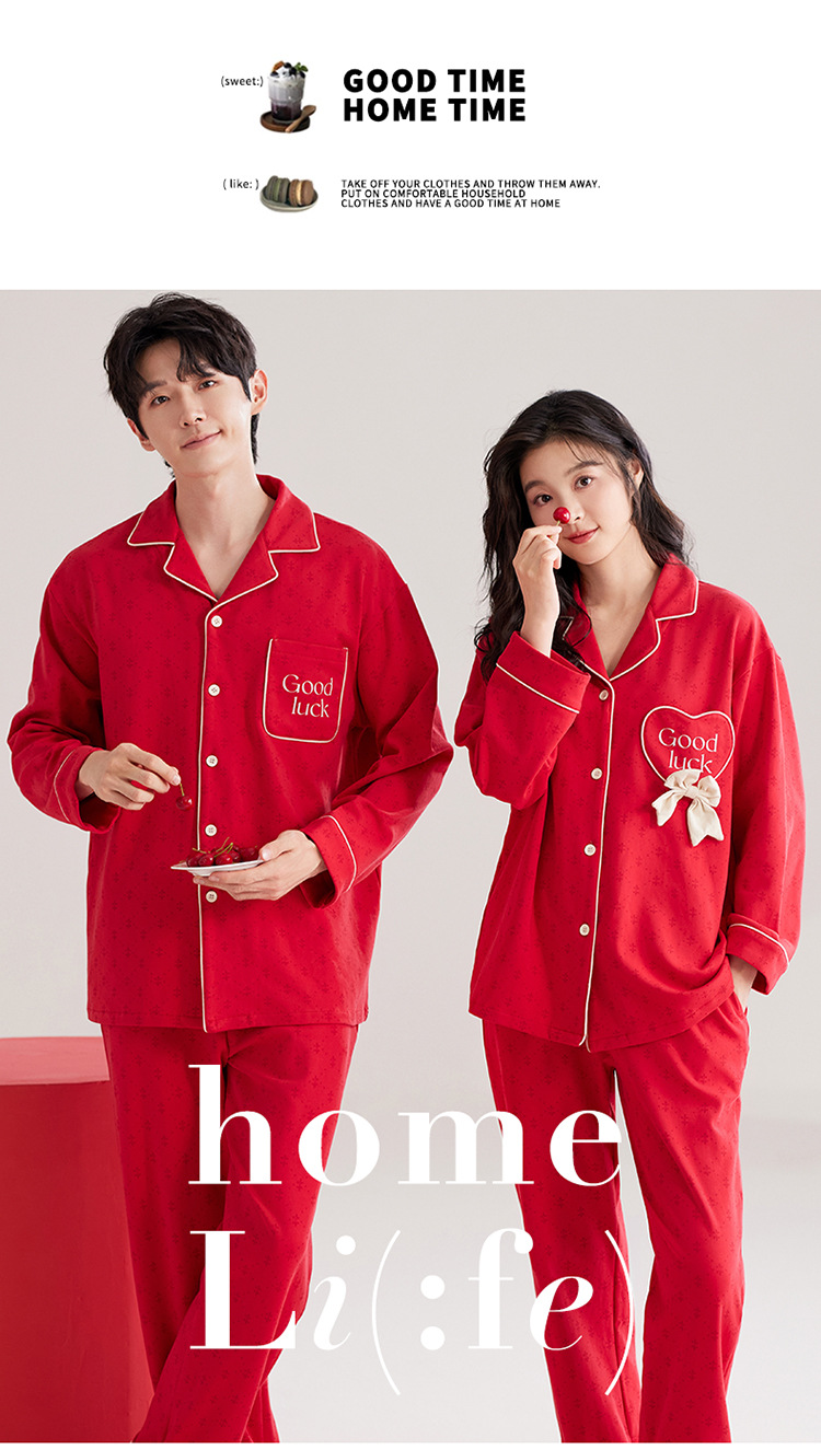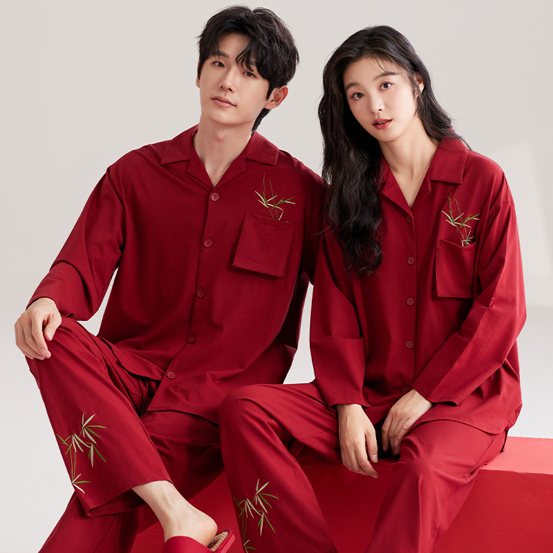커플 웨딩 잠옷 봄, 가을, 겨울 순수 코튼 신혼 긴팔 빨간색 동물의 해 남성과 여성의 가정복 세트