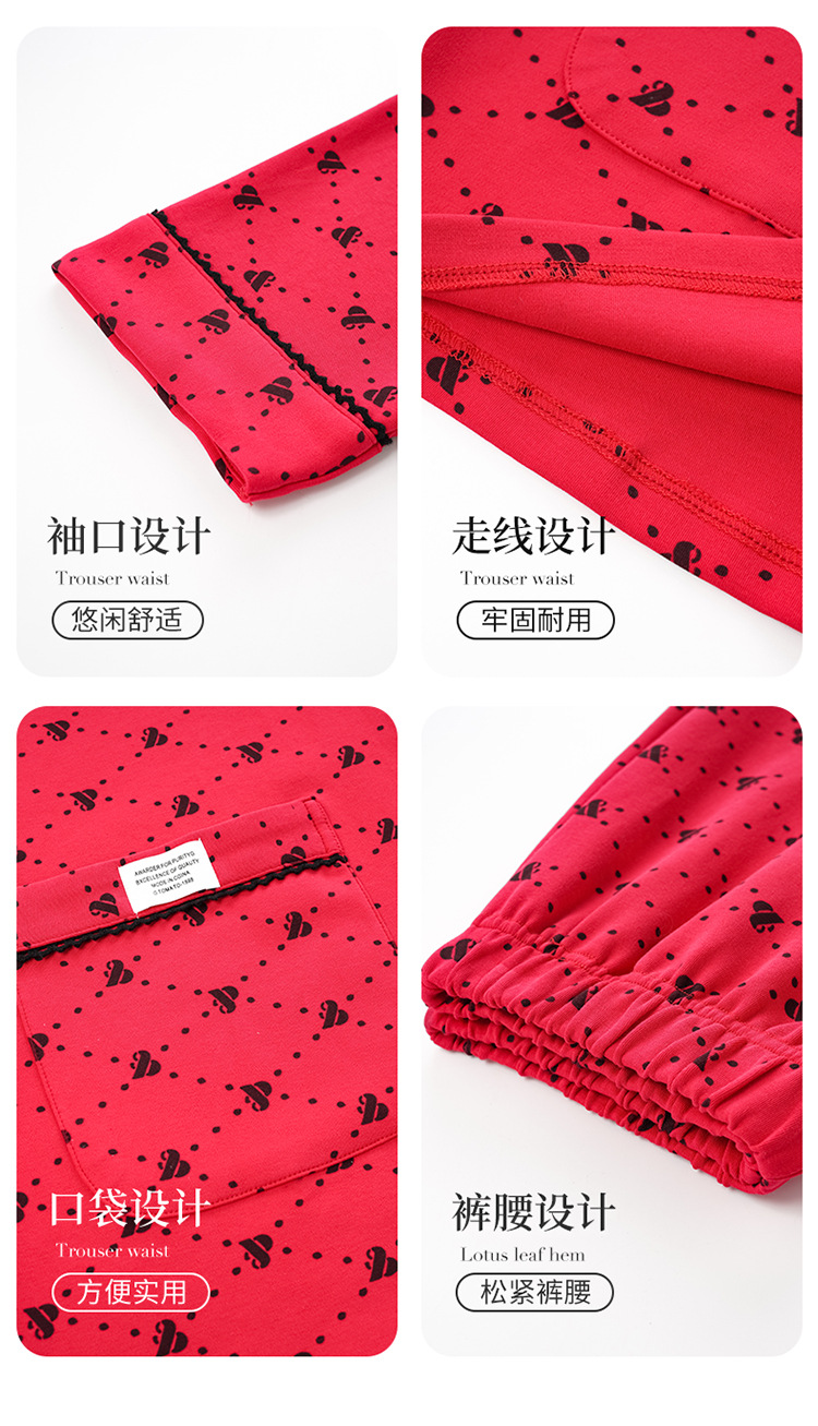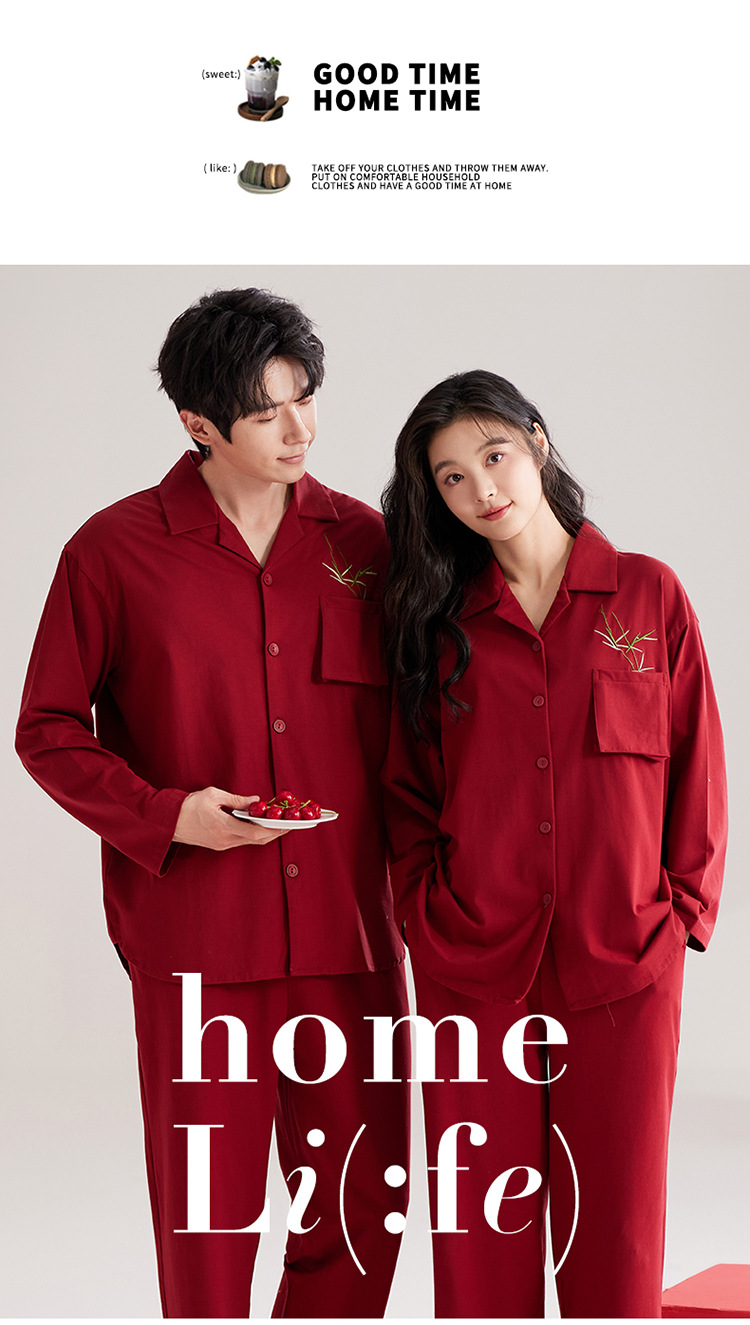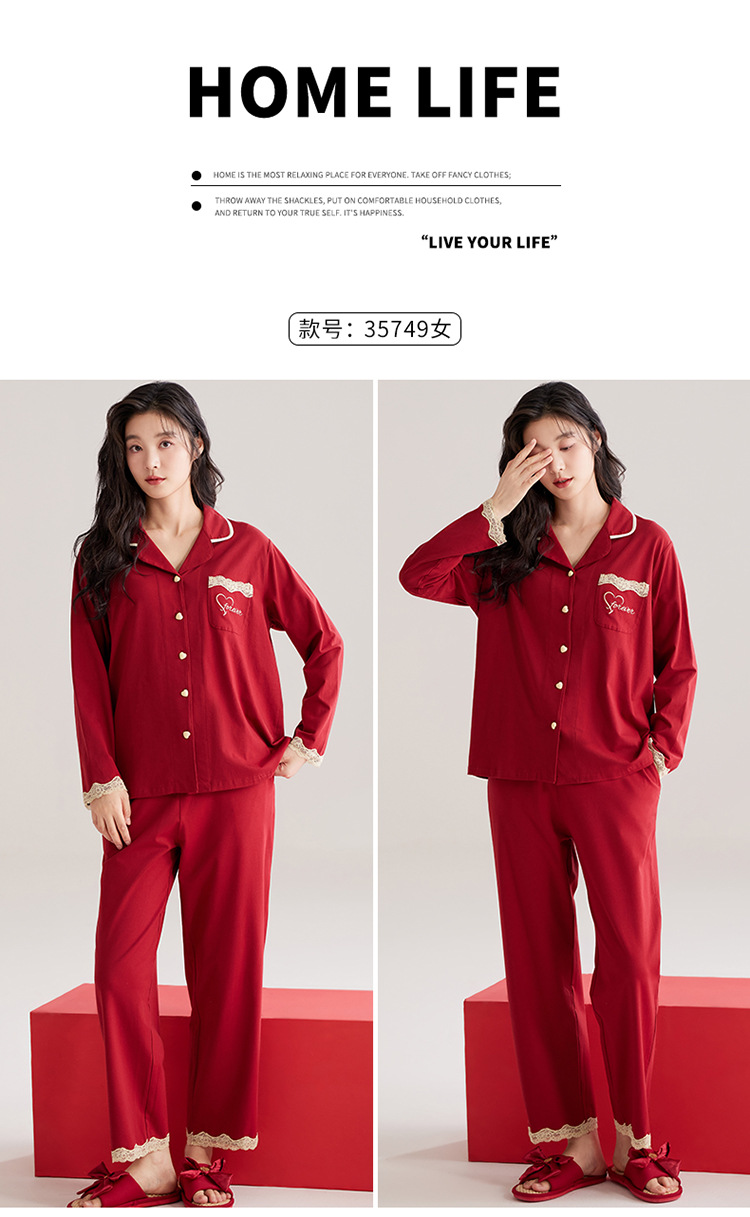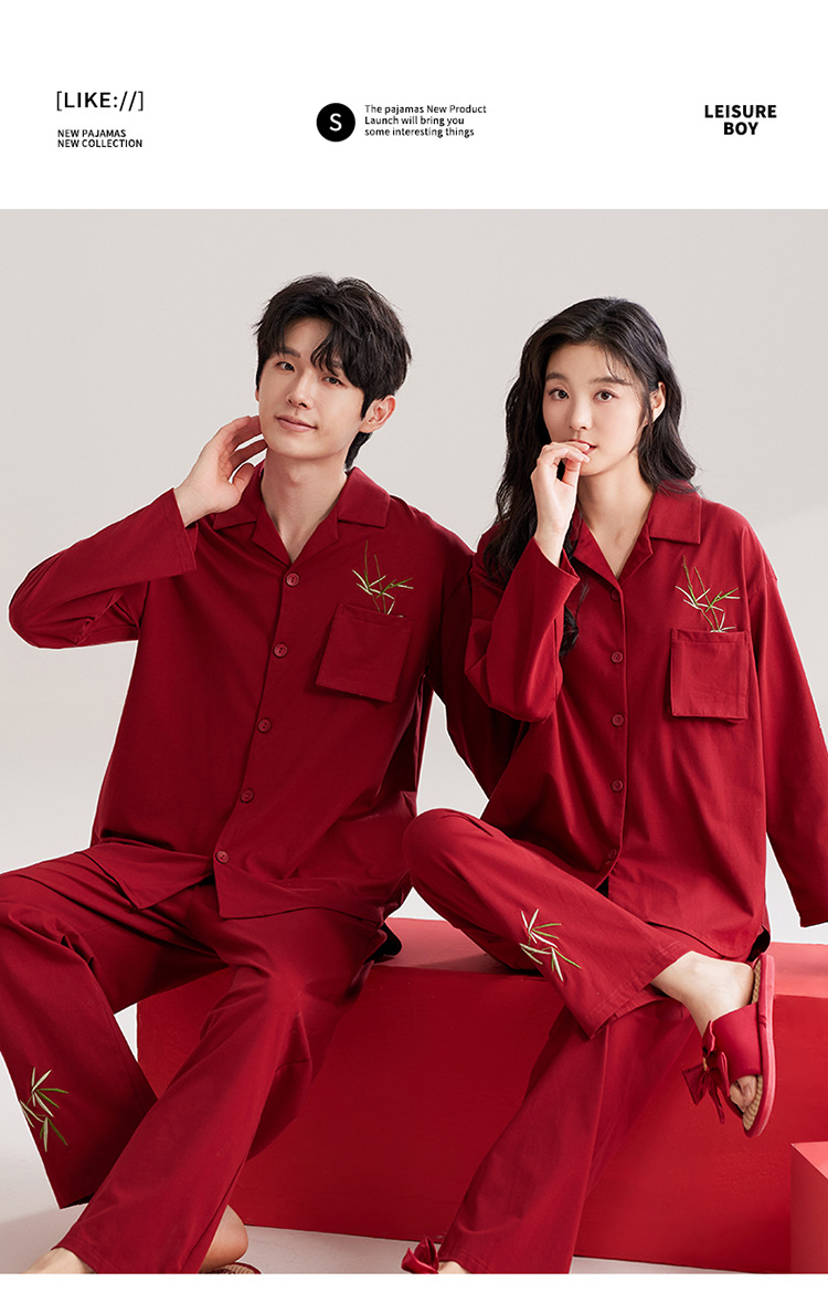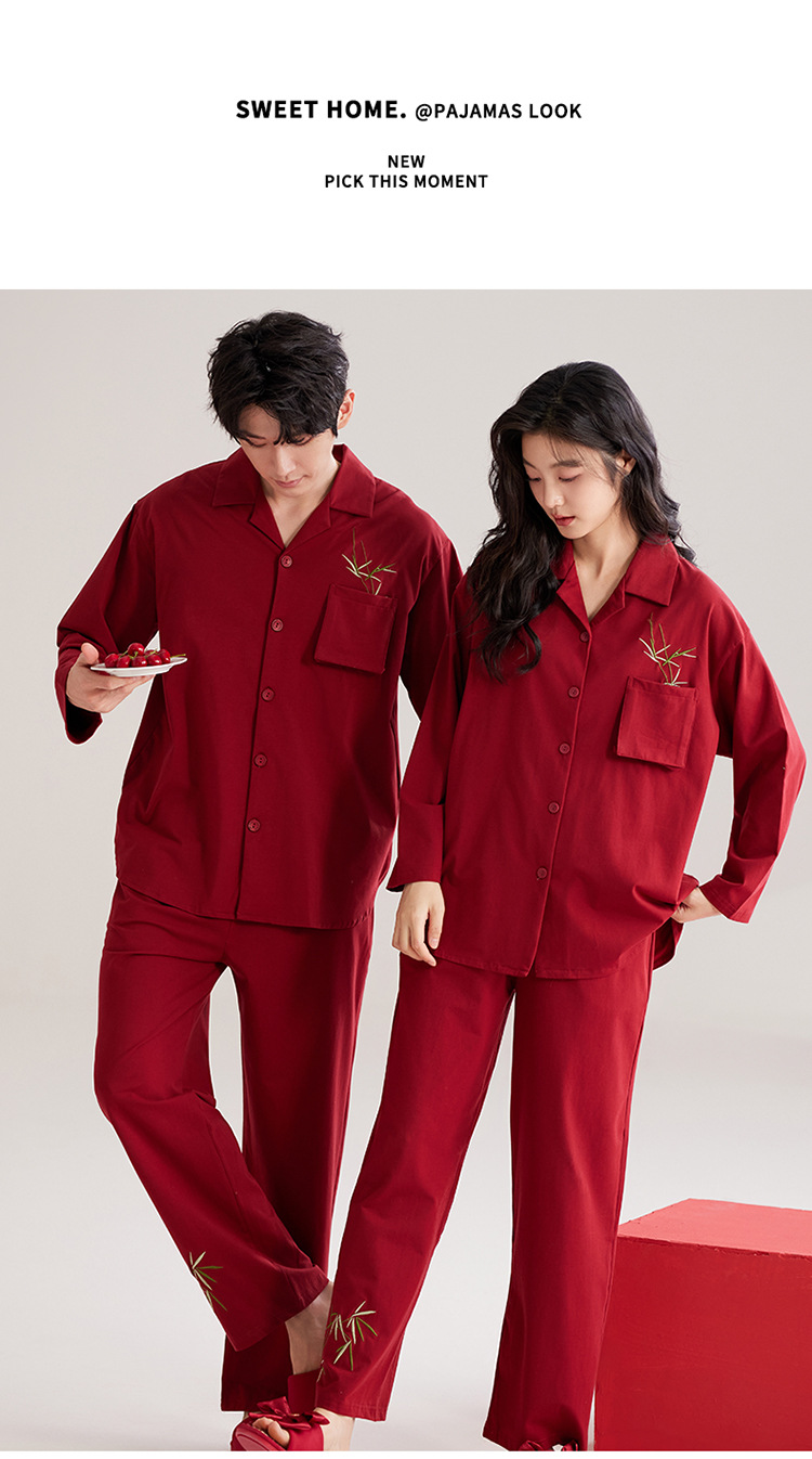 커플 웨딩 잠옷 봄, 가을, 겨울 순수 코튼 신혼 긴팔 빨간색 동물의 해 남성과 여성의 가정복 세트