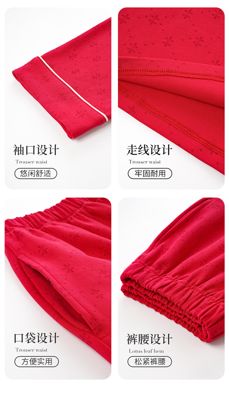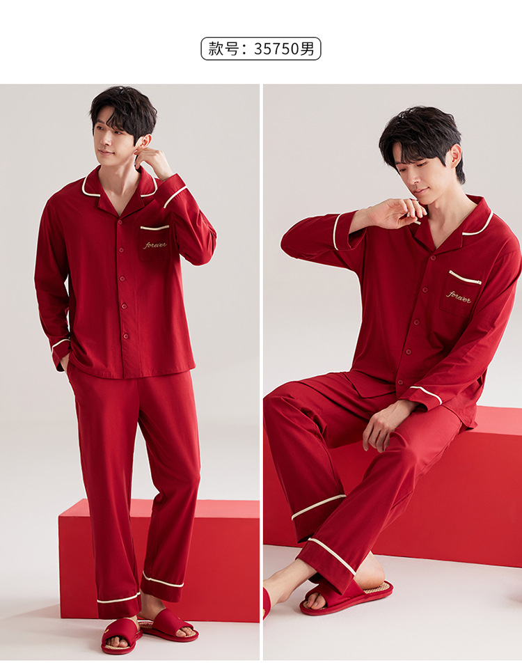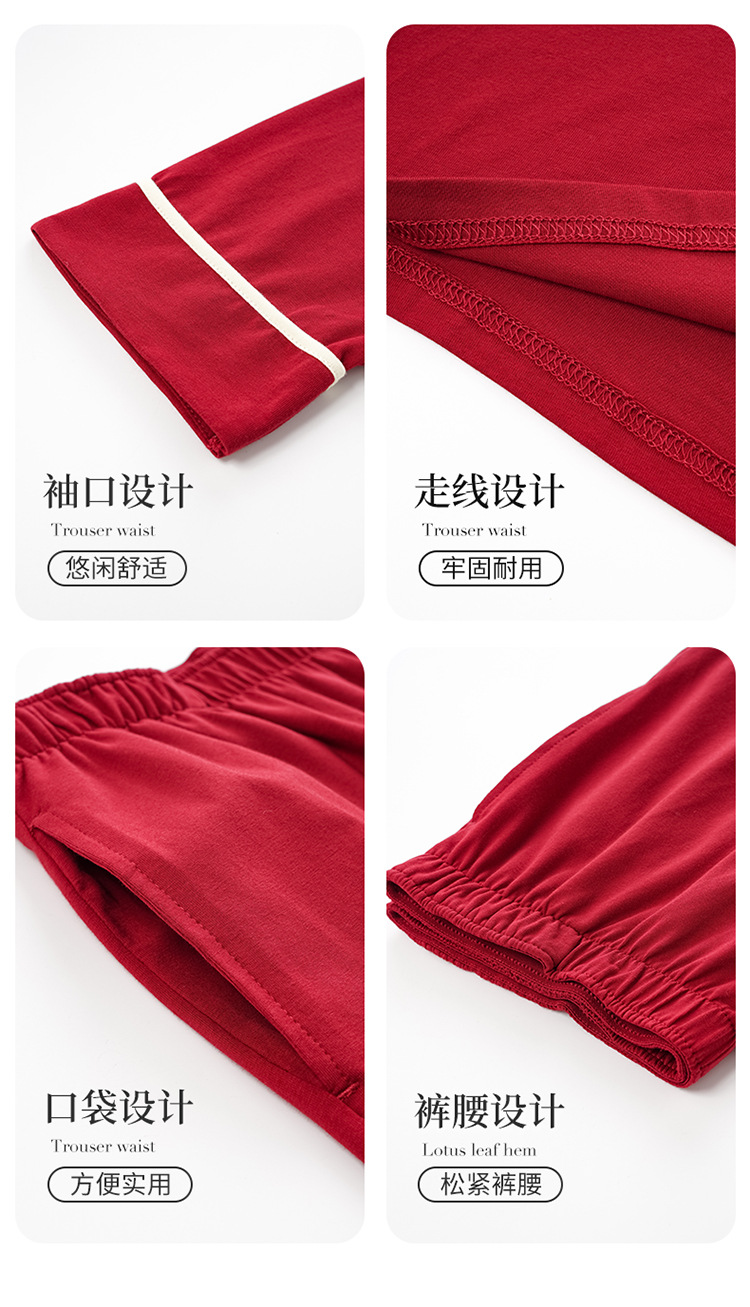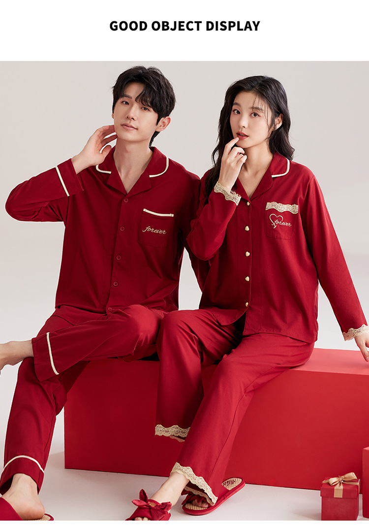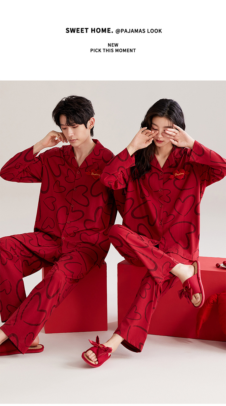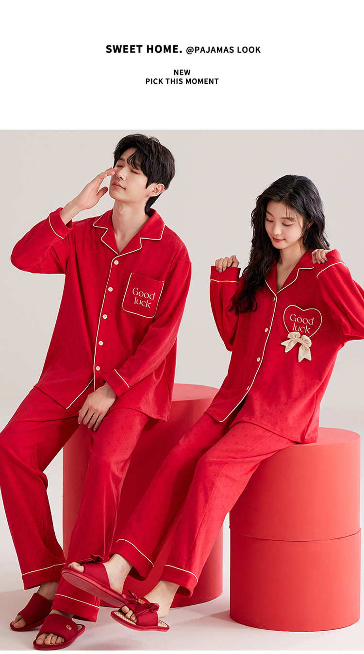 커플 웨딩 잠옷 봄, 가을, 겨울 순수 코튼 신혼 긴팔 빨간색 동물의 해 남성과 여성의 가정복 세트스토어 가기