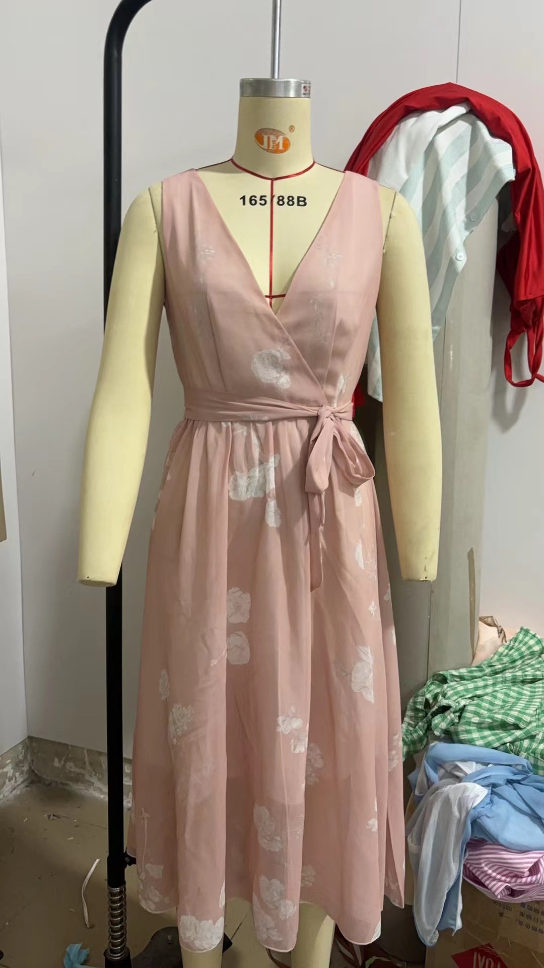 2025 유럽과 미국의 여성 드레스 연회 이브닝 드레스 아마존 민소매 조끼 v 넥 디지털 프린트 드레스스토어 가기