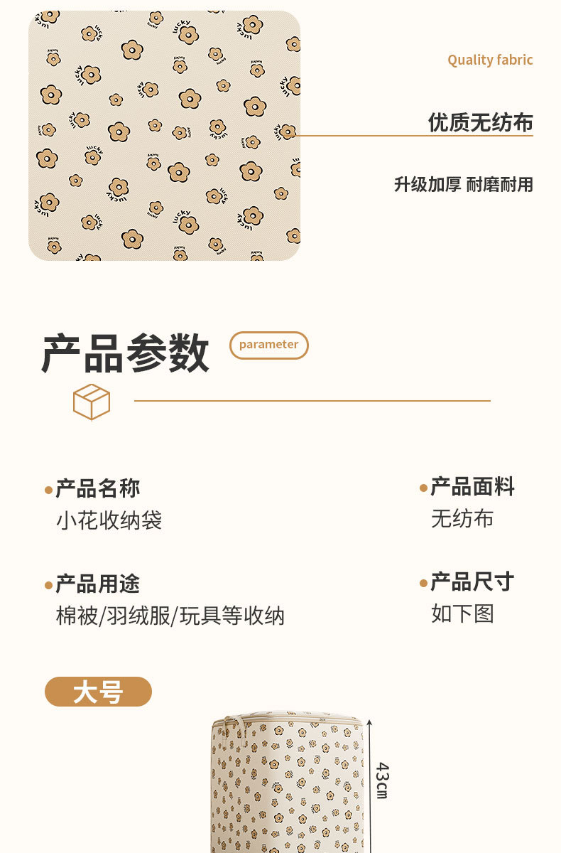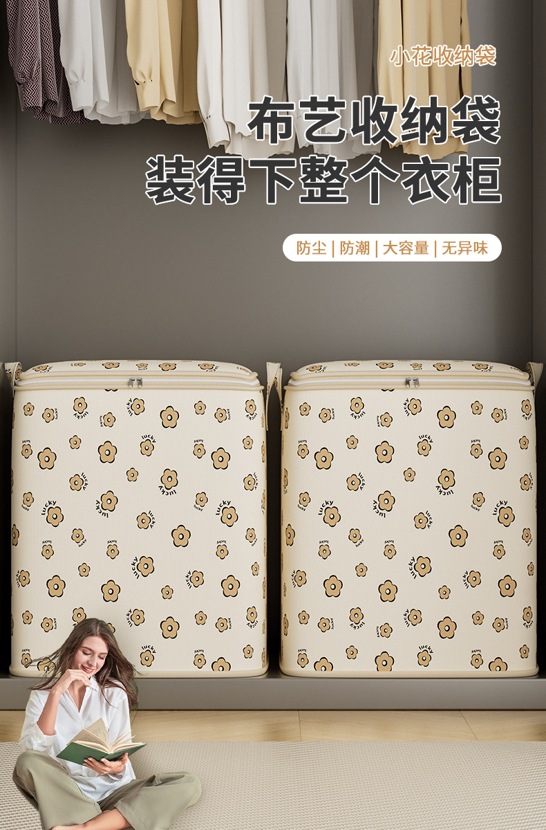 새로운 부직포 만화 꽃 의류 보관 가방 이불 가정용 보관 가방 의류 보관 이동 및 정리 가방
