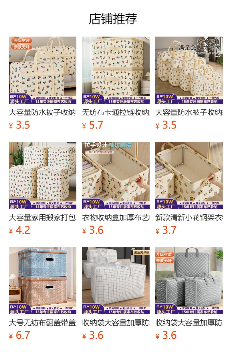 새로운 부직포 만화 꽃 의류 보관 가방 이불 가정용 보관 가방 의류 보관 이동 및 정리 가방스토어 가기