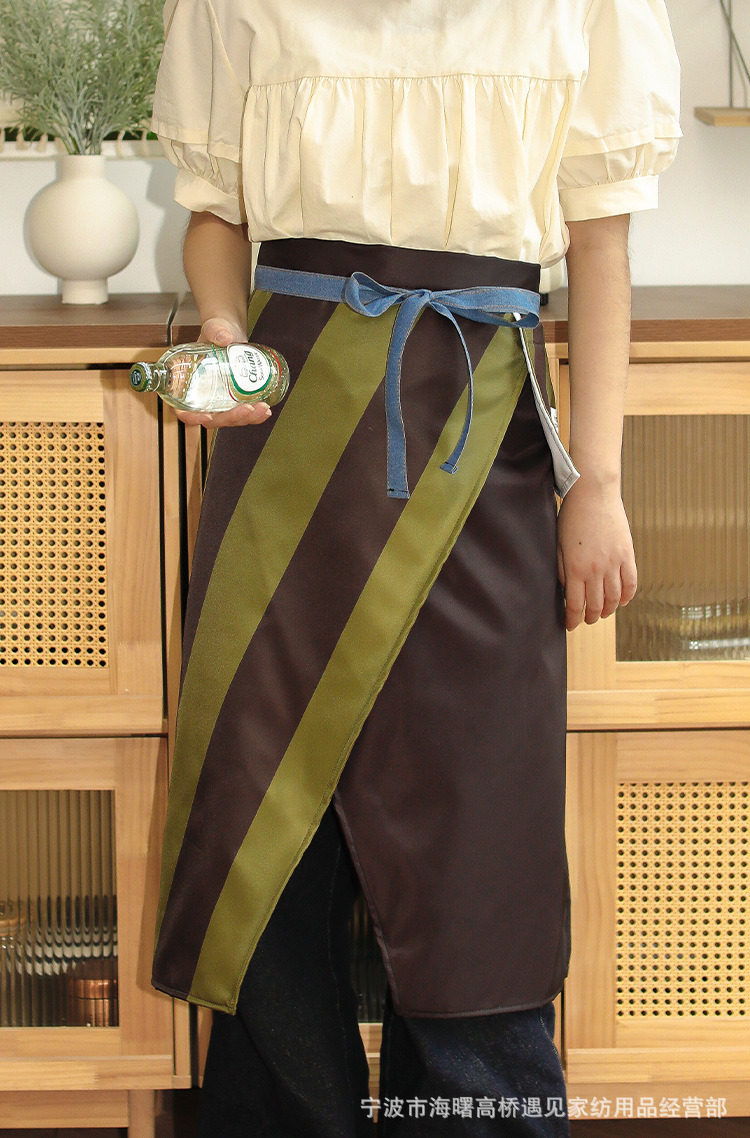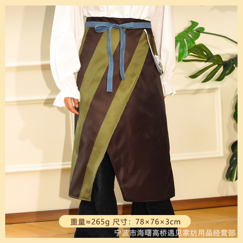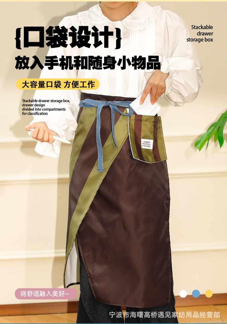 • 노란색과 갈색의 두꺼운 줄무늬 앞치마