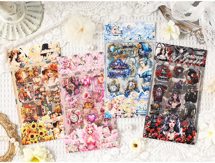 섀도우 로즈 유럽 복고풍 캐릭터 공주 시리즈 애완 동물 핸드북 장식 재료 콜라주 크로스 보더 플랫 스티커스토어 가기