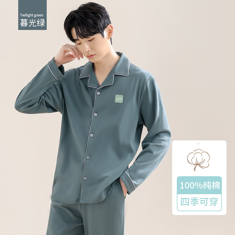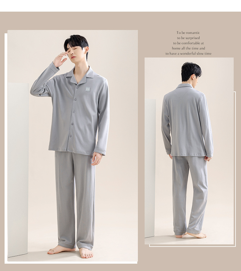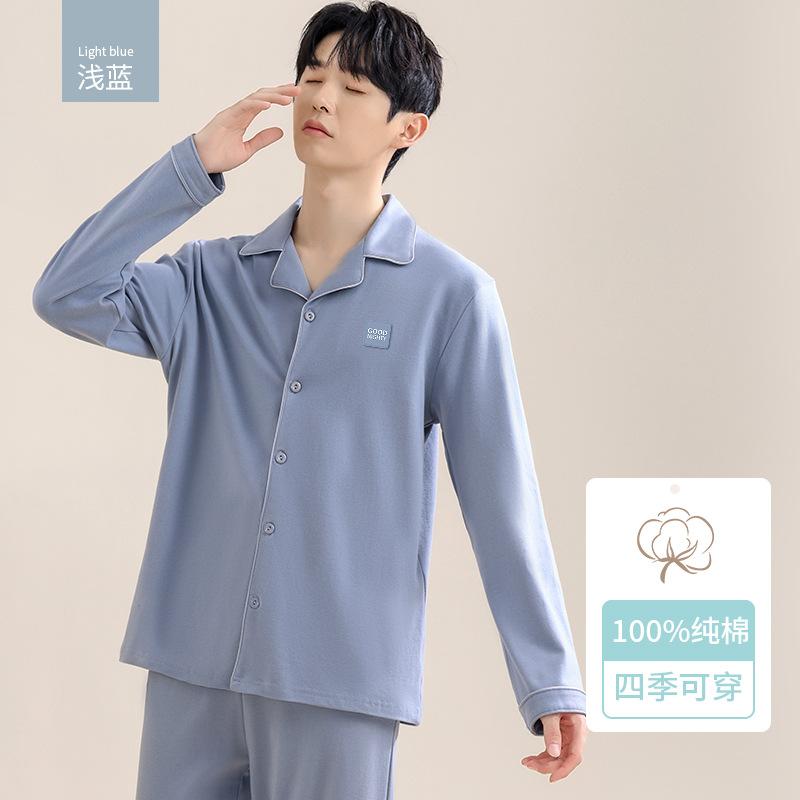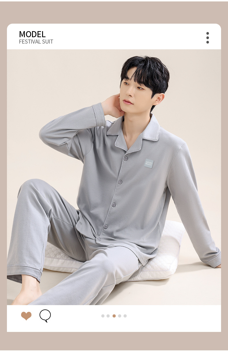 순면 남성용 잠옷 100% 면 홈웨어 세트 남성용 순면 긴팔 긴바지 루즈핏 통기성 2025 신상스토어 가기