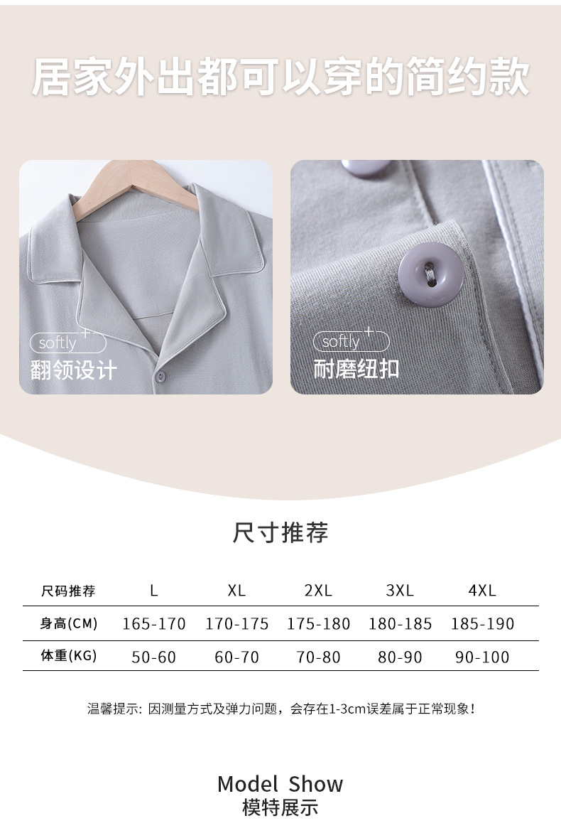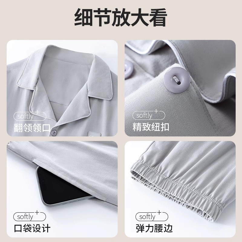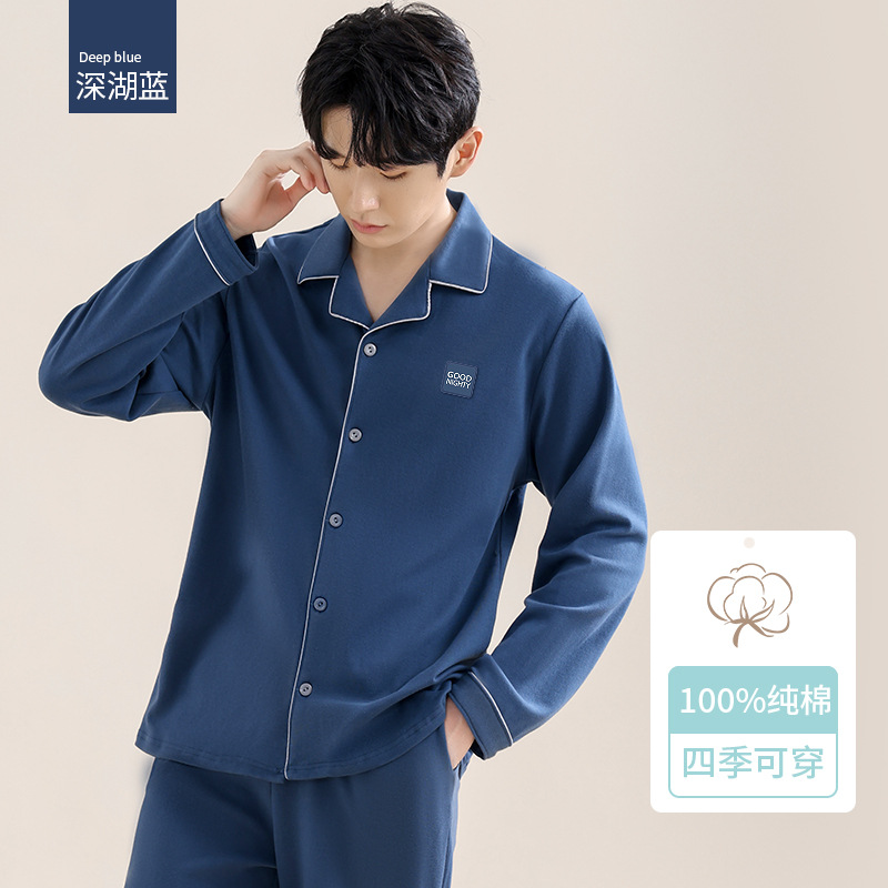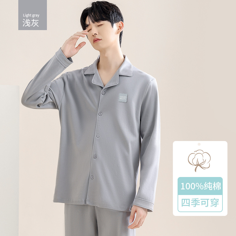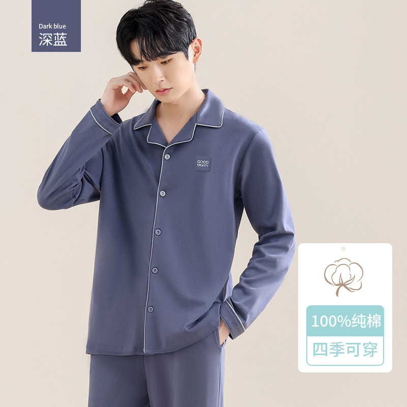 순면 남성용 잠옷 100% 면 홈웨어 세트 남성용 순면 긴팔 긴바지 루즈핏 통기성 2025 신상스토어 가기
