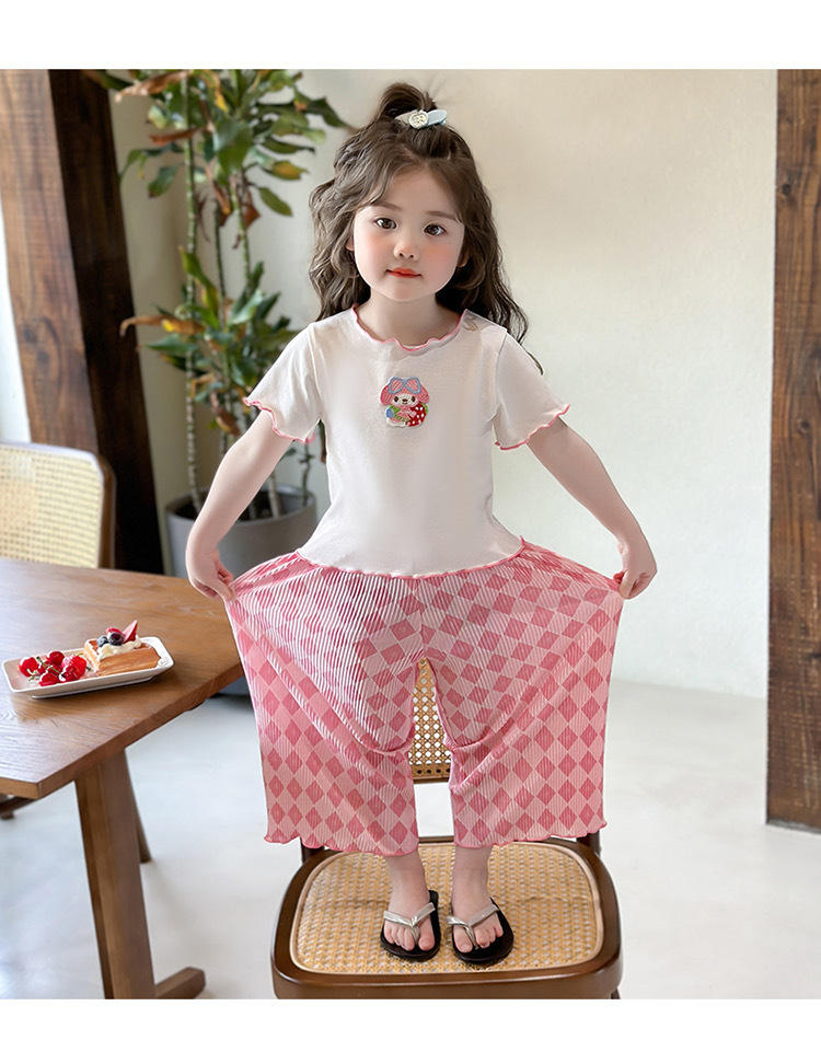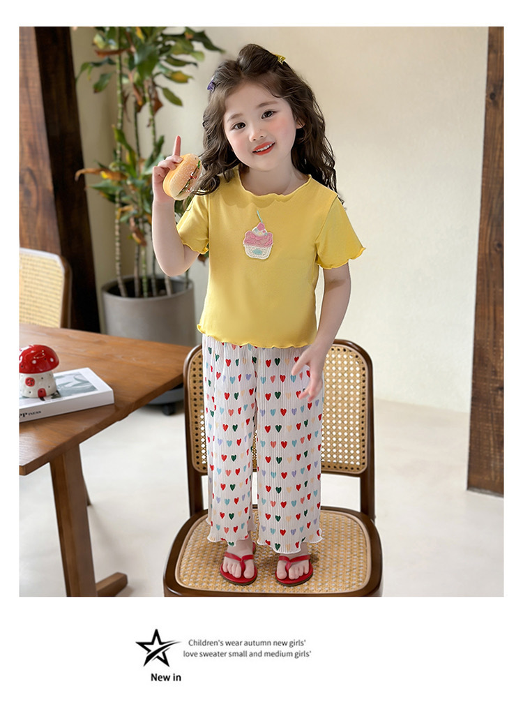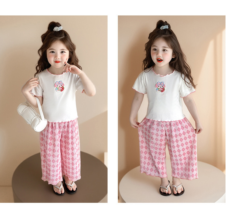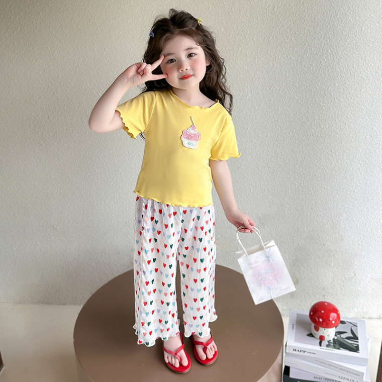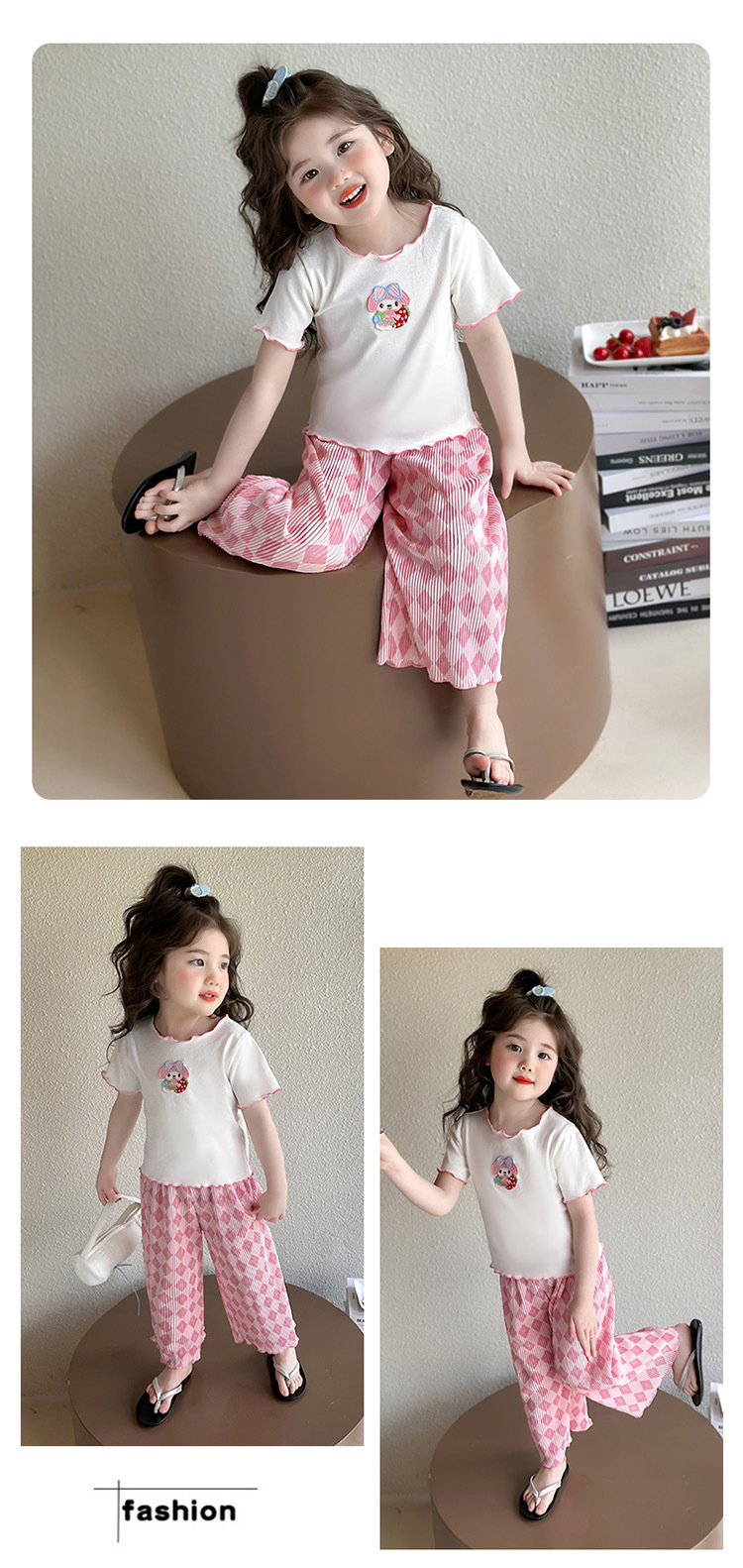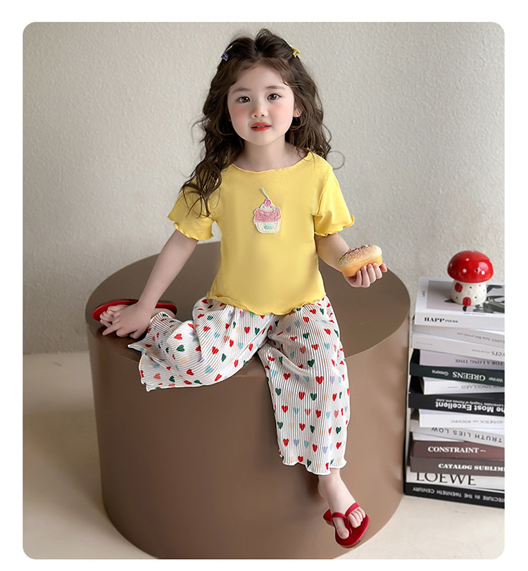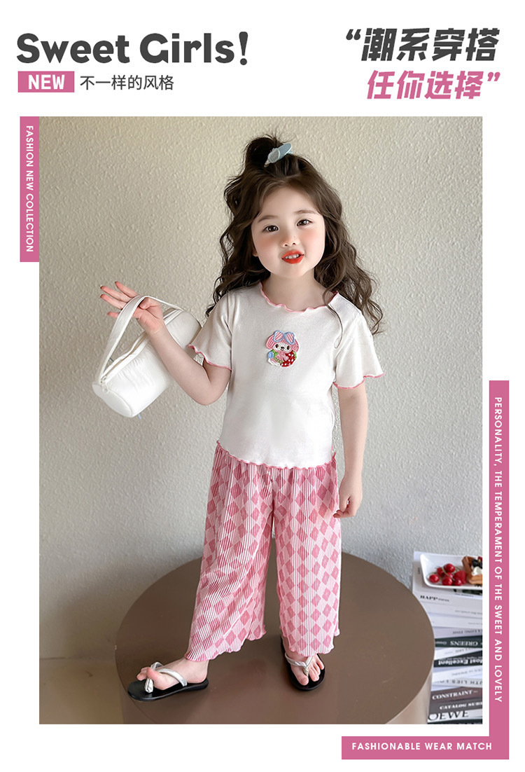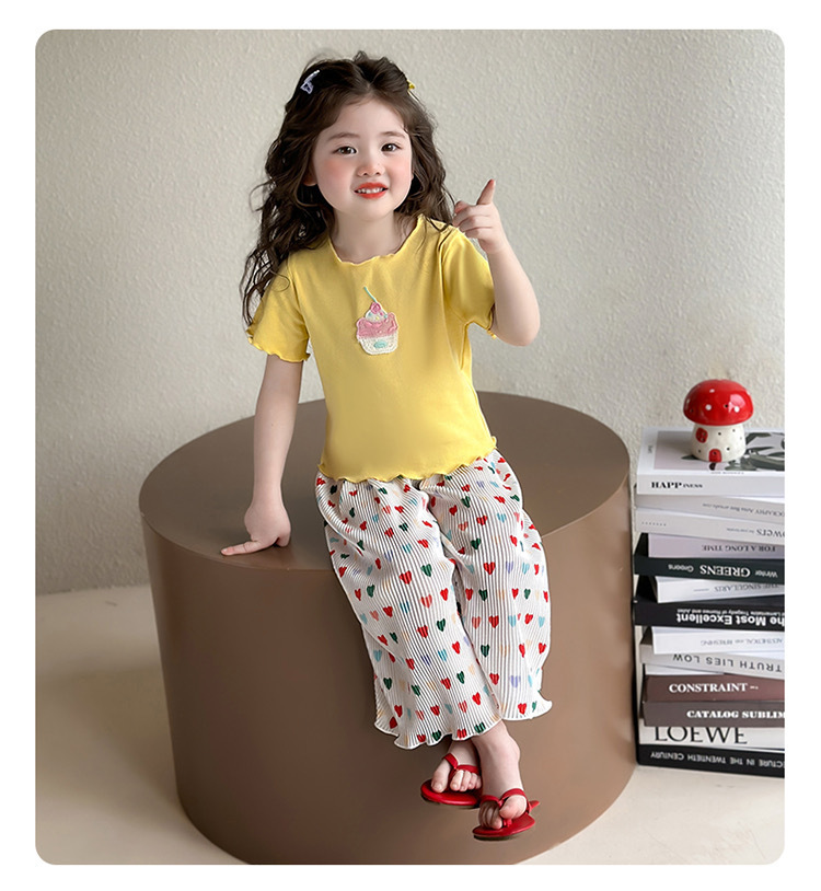 2025 여름 스타일 아기 귀여운 아기 소녀 반팔 소녀 탑 여름 어린이 티셔츠 어린이 투피스 세트