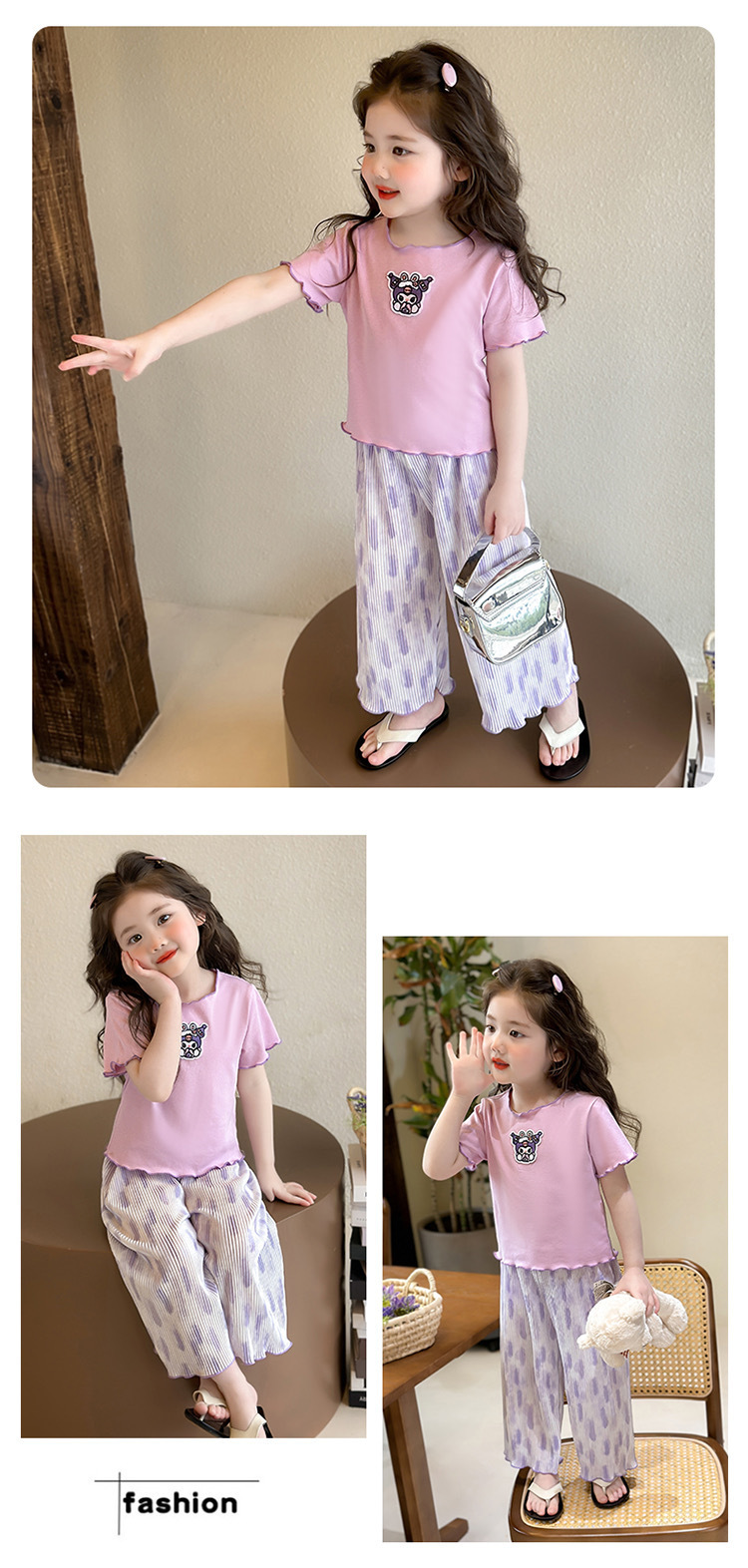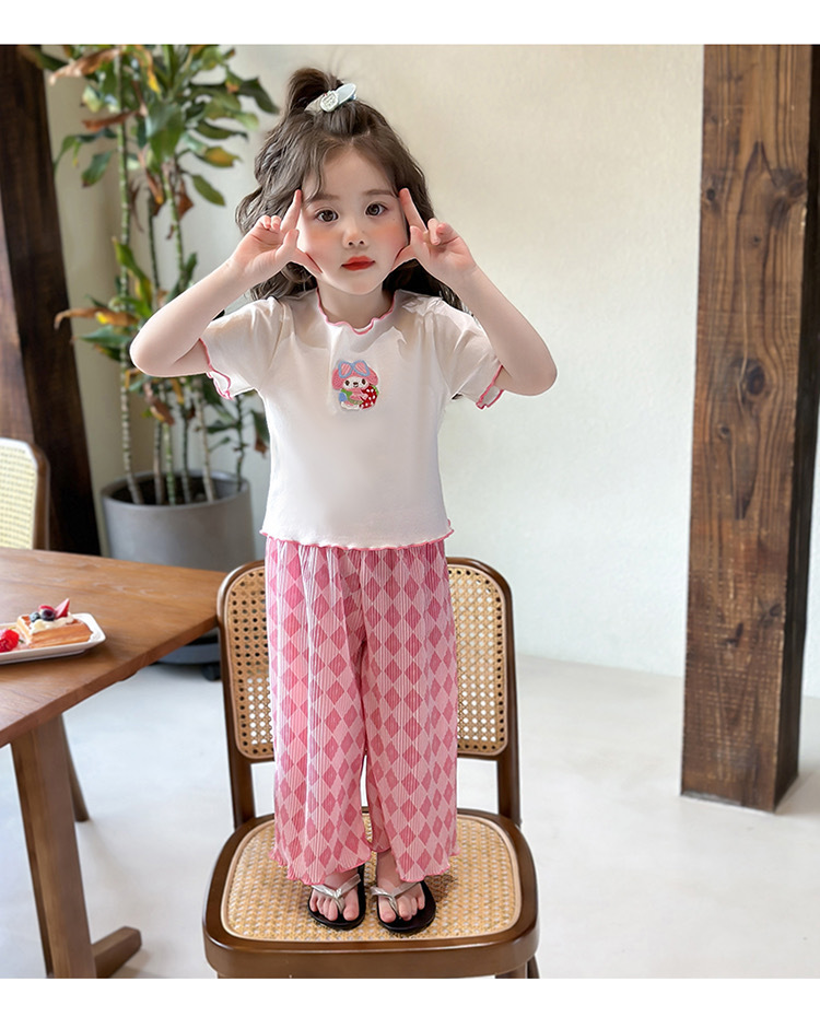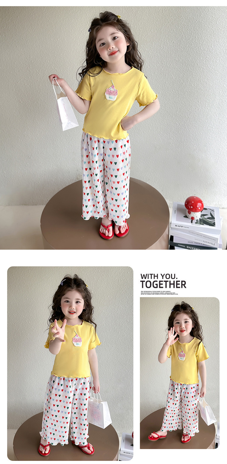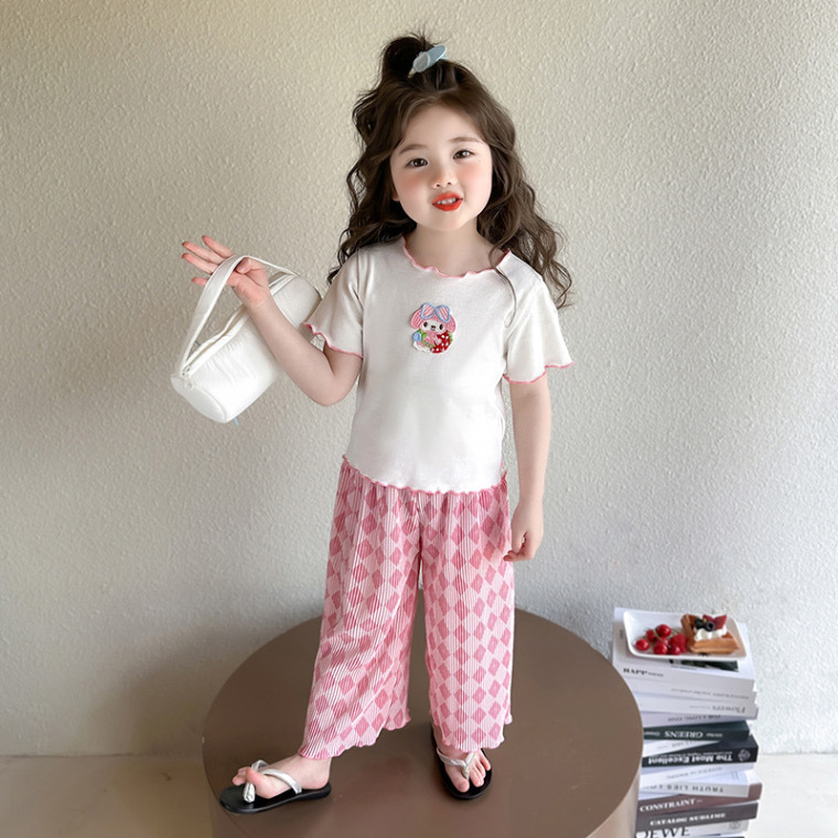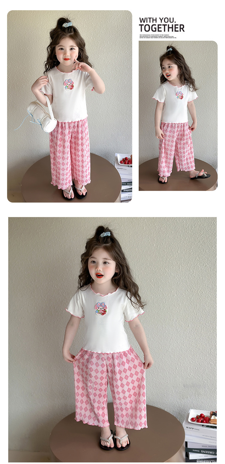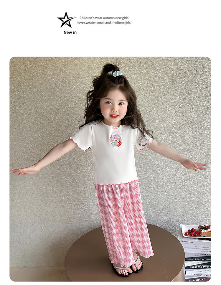 2025 여름 스타일 아기 귀여운 아기 소녀 반팔 소녀 탑 여름 어린이 티셔츠 어린이 투피스 세트