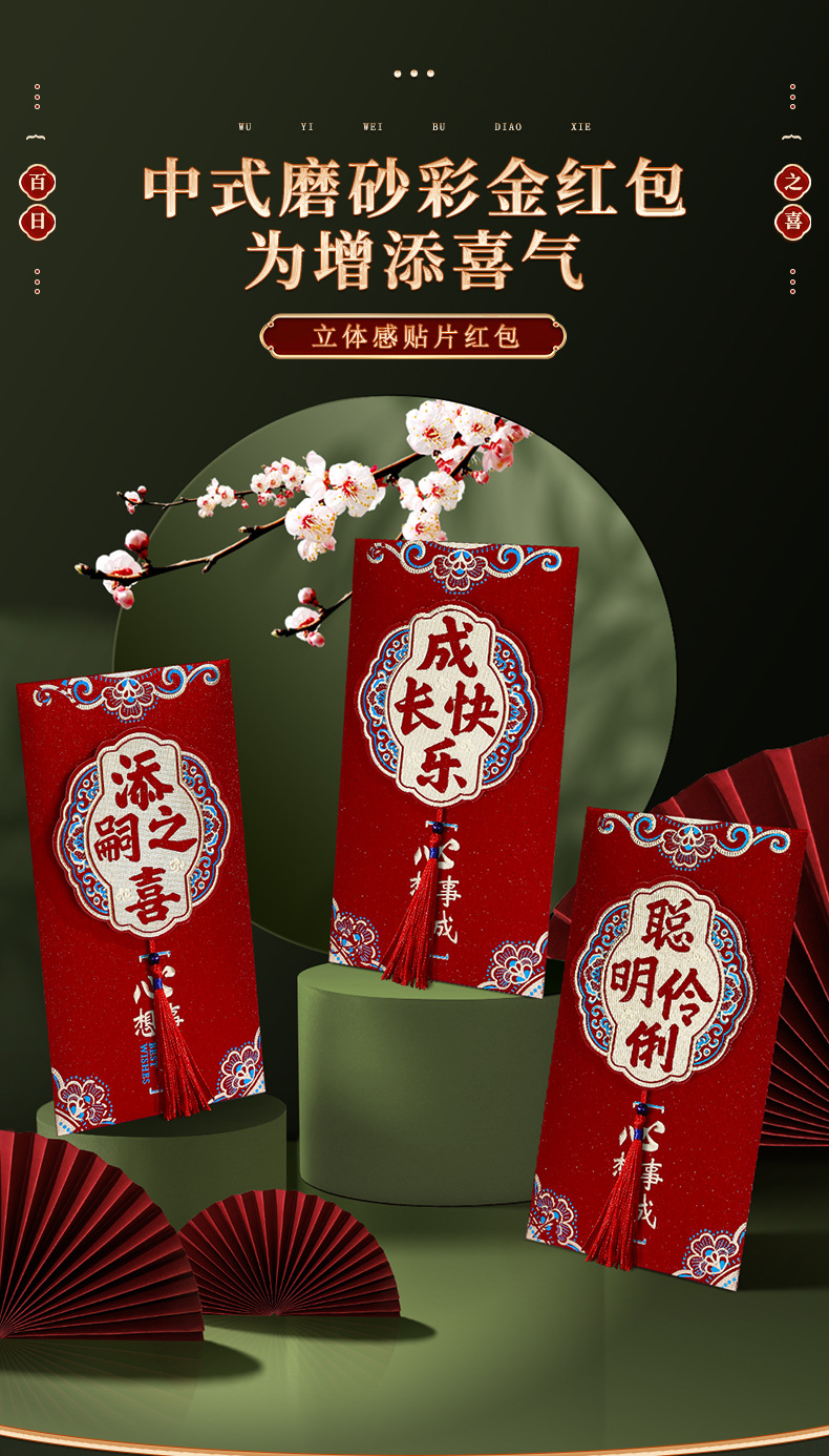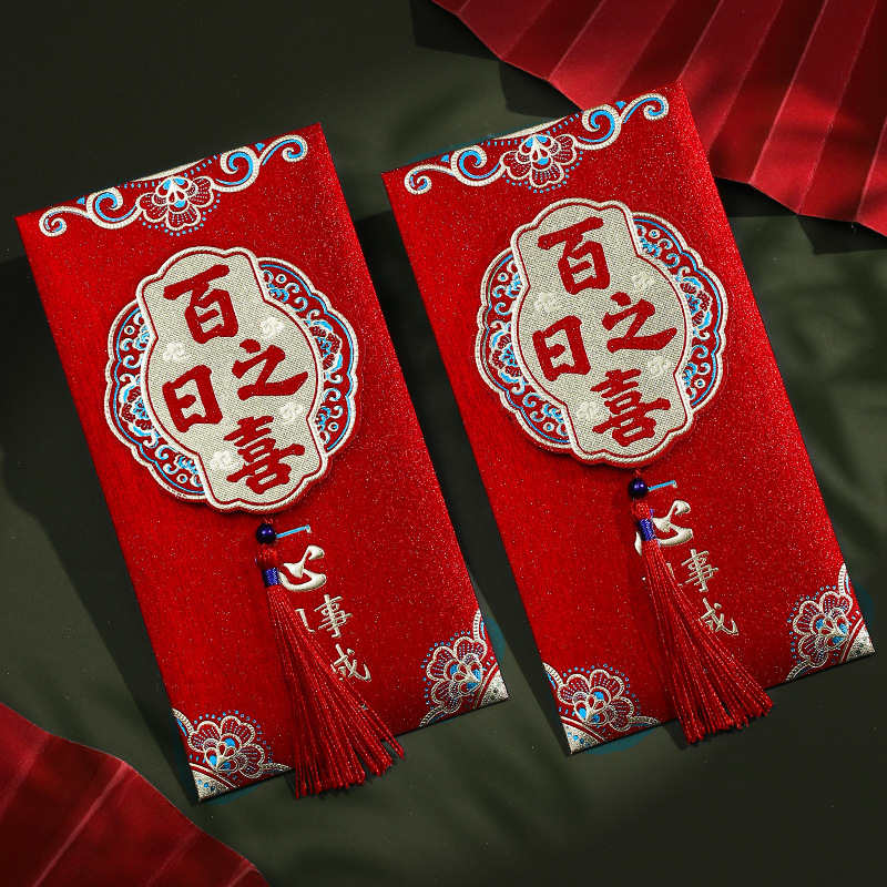 생일 빨간 봉투 2025 새로운 아기의 100일 축하 보름달 연회 1년 선물 빨간 봉투 가방 입체 복고풍 빨간 봉투스토어 가기