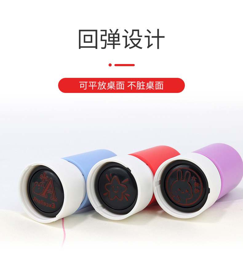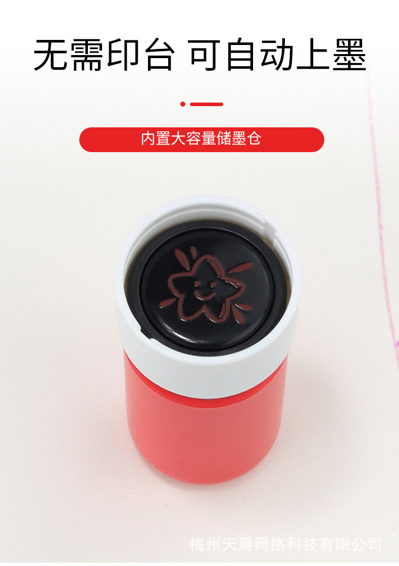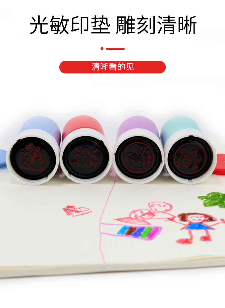 원형 20개 감광성 스탬프 재료 도매 만화 스탬프 스프링 자동 오일 출시 기능 교사 격려 스탬프 핸드북