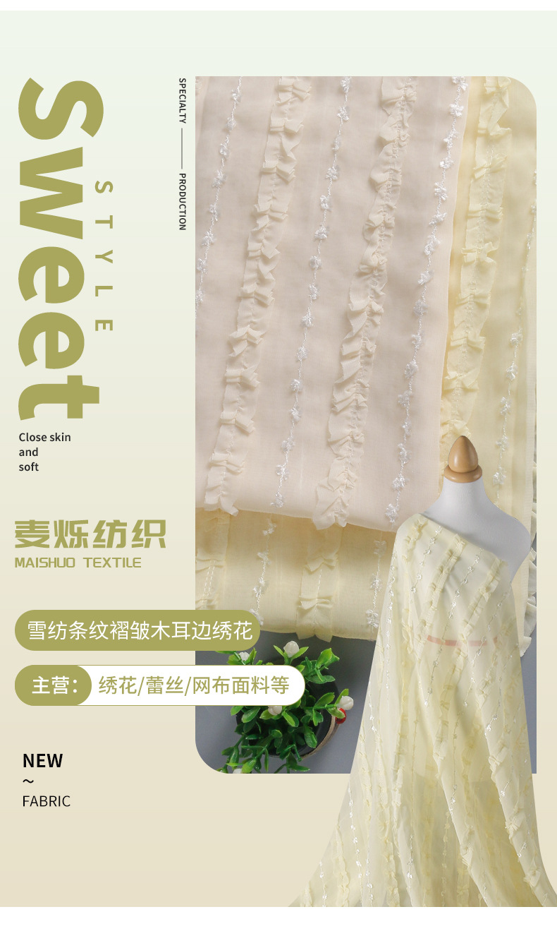 여름 달콤한 드레스 서스펜더 로리타 스트라이프 쉬폰 원단 입체 주름 장식 자수 원단스토어 가기