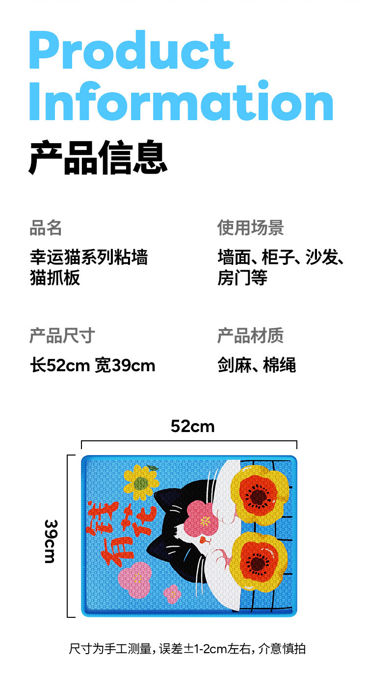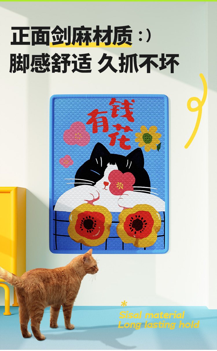 고양이 스크래치 보드, 벽에 부착된 고양이 장난감, 내마모성, 비탈착성, 긁힘 방지 패드, 소파, 고양이 발톱 긁힘 및 가려움증, 사이잘 스크래치 보드스토어 가기