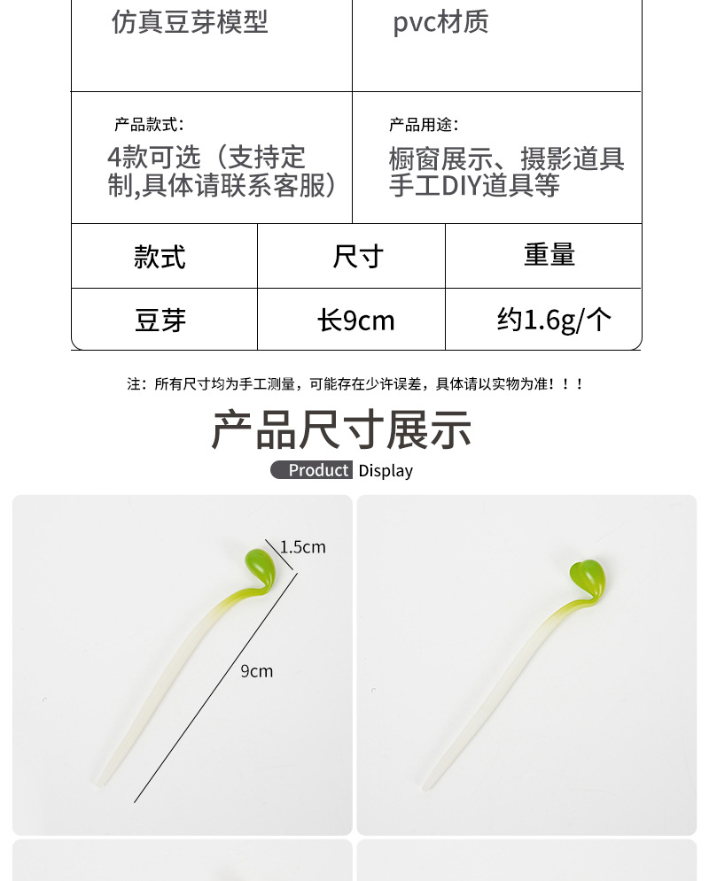 9cm 시뮬레이션된 콩나물 야채 모델 DIY 놀이 집 장난감 요리 재료 액세서리 콩나물의 미니어처 식품 장난감스토어 가기
