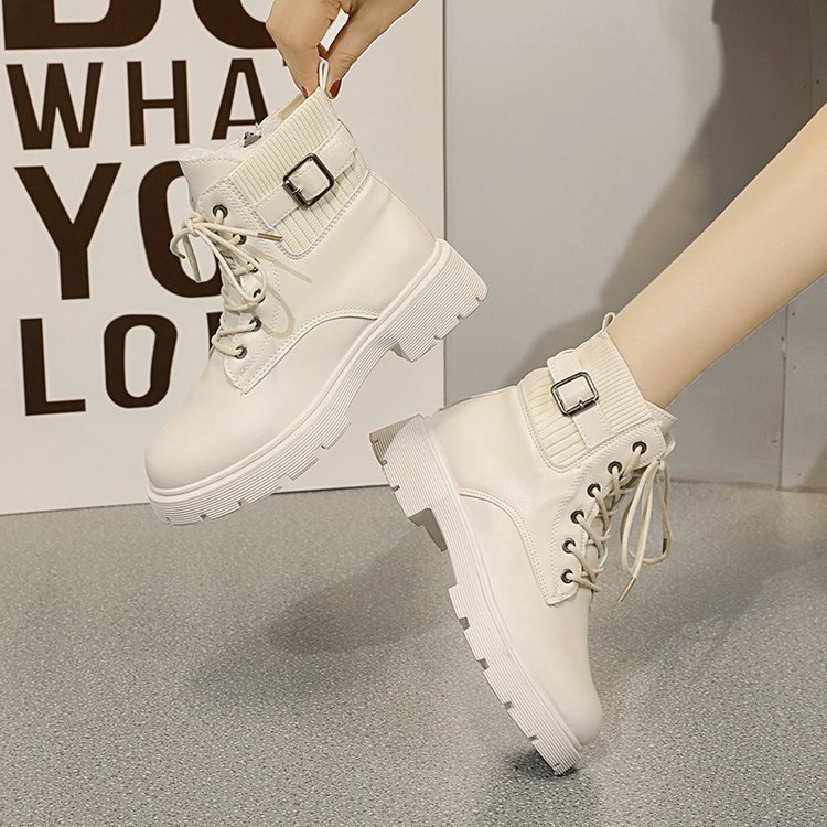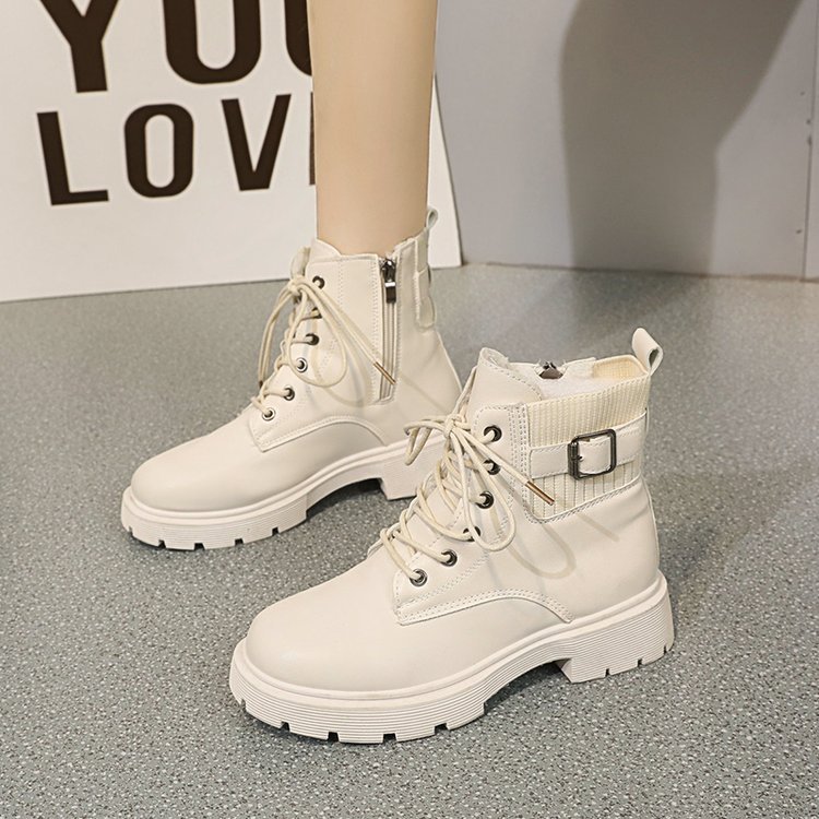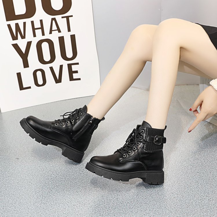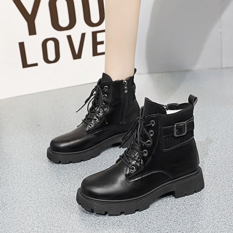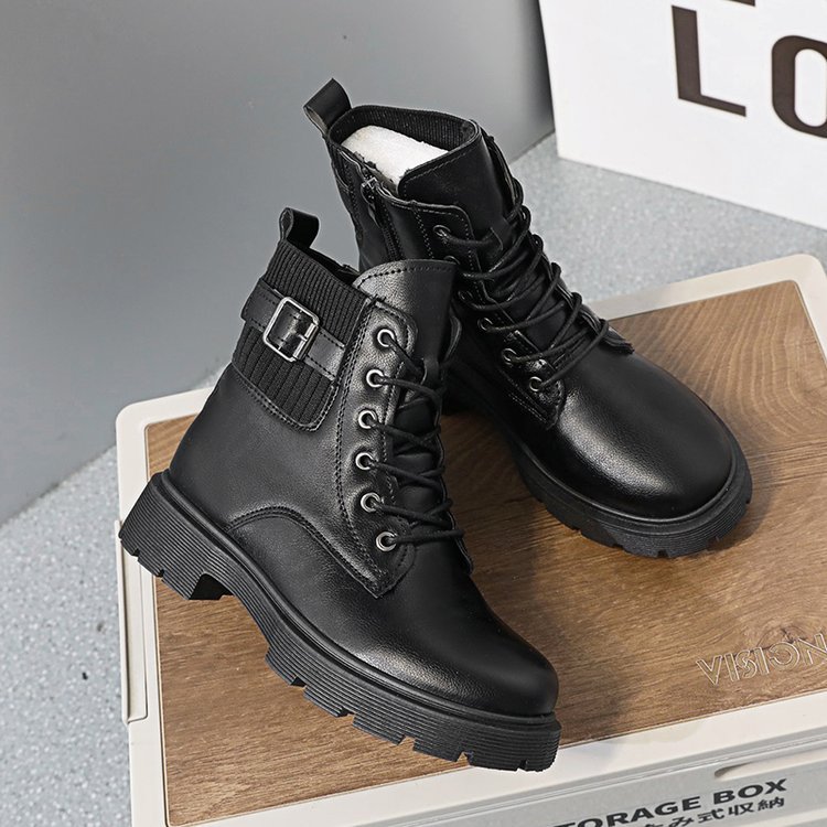 여성용 블랙 마틴 부츠 2025 가을 겨울 영국 스타일 복고풍 다용도 짧은 부츠 슬리밍 벨트 버클 오토바이 부츠