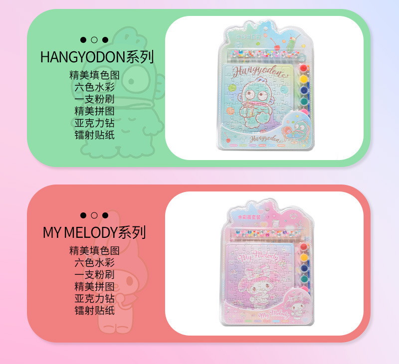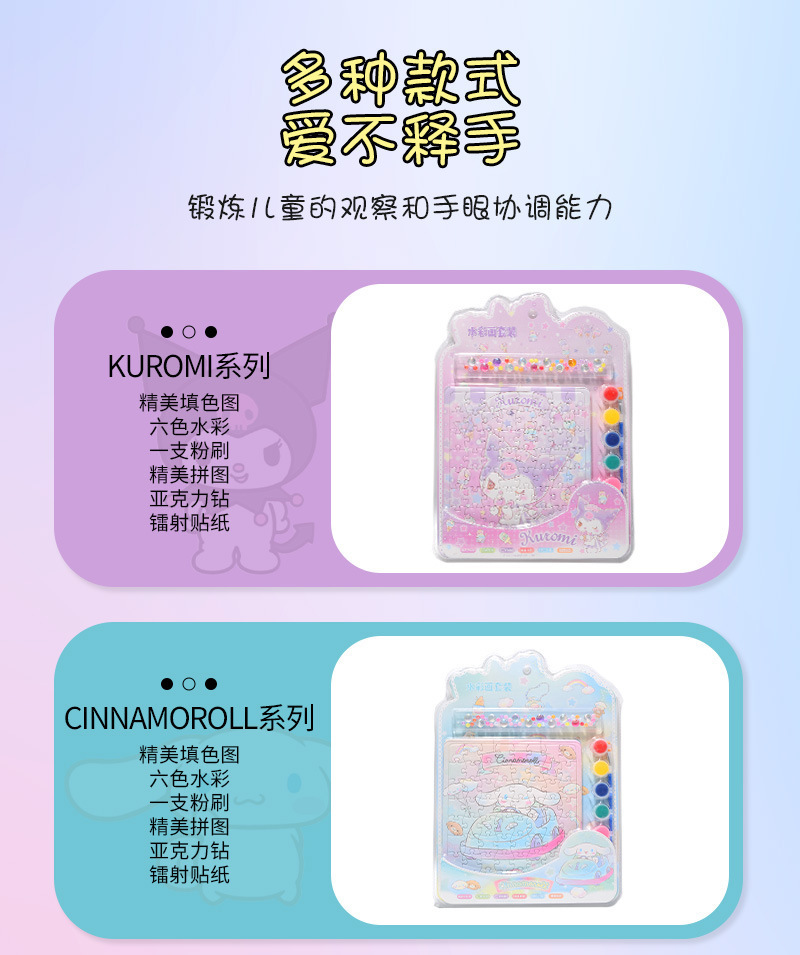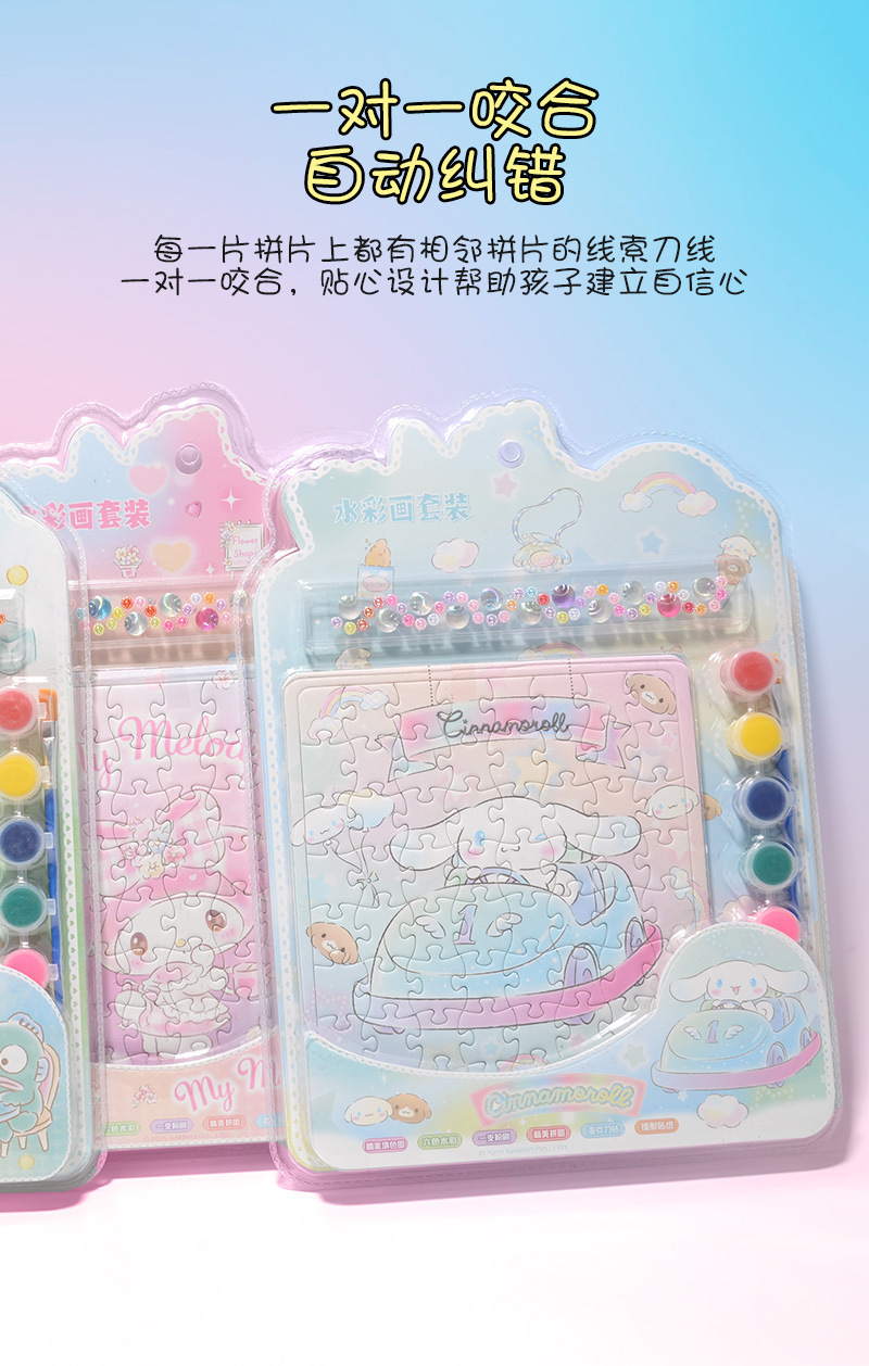 정품 공인 산리오 DIY 퍼즐 수채화 스티커 세트 3-in-1 퍼즐 및 스티커 색칠 그림 세트