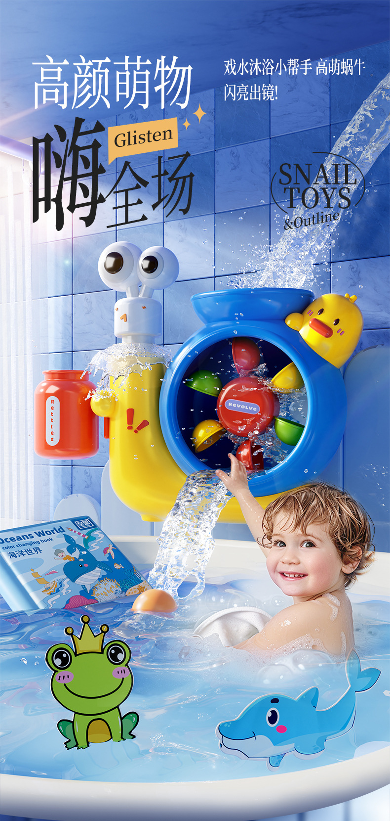 어린이 목욕, 물놀이, 달팽이 회전 물레방아, 흡입 컵, 회전 욕실 장난감, 남성과 여성을 위한 아기 선물스토어 가기