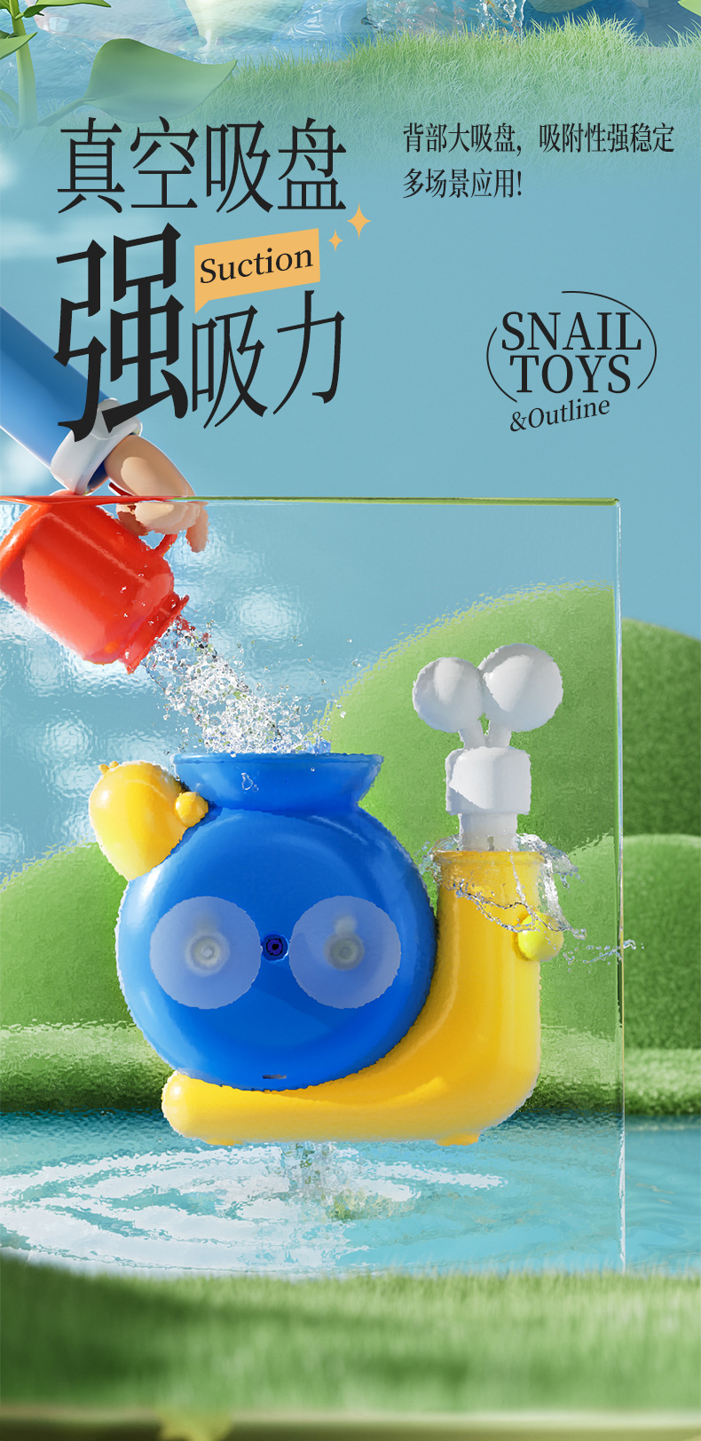 어린이 목욕, 물놀이, 달팽이 회전 물레방아, 흡입 컵, 회전 욕실 장난감, 남성과 여성을 위한 아기 선물