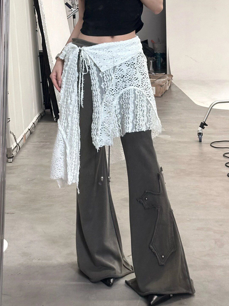 속이 빈 레이스 앞치마 봄 신작 Xiaoying 메쉬 스커트 레이어드 핫 소녀 화이트 자카드 스커트 매칭