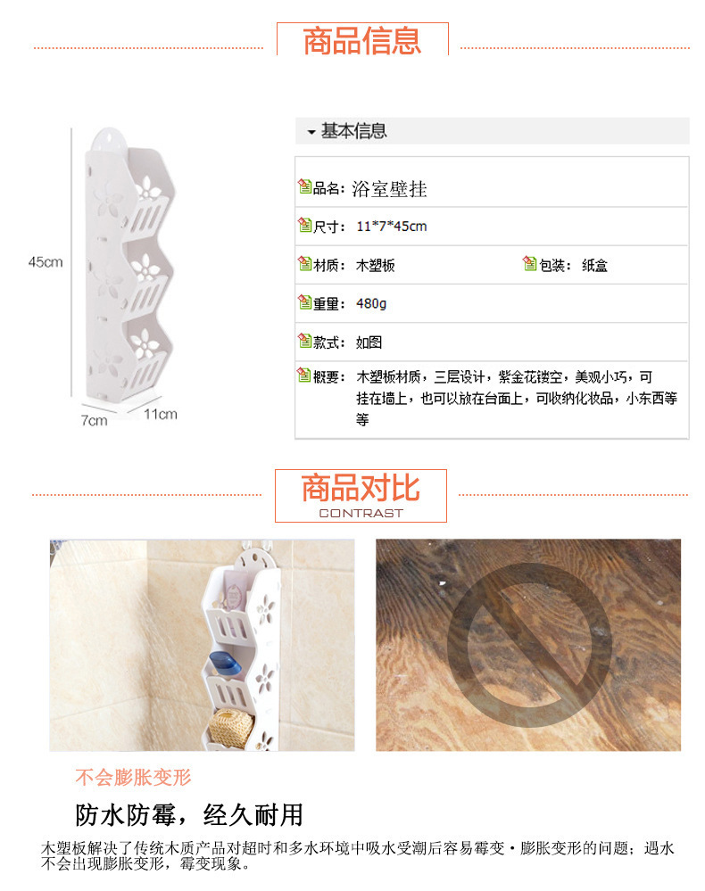 거실, 침실, 욕실 벽 수납 선반을 위한 구멍이 없는 다층 벽 수납 선반 벽걸이형 대용량 수납 캐비닛