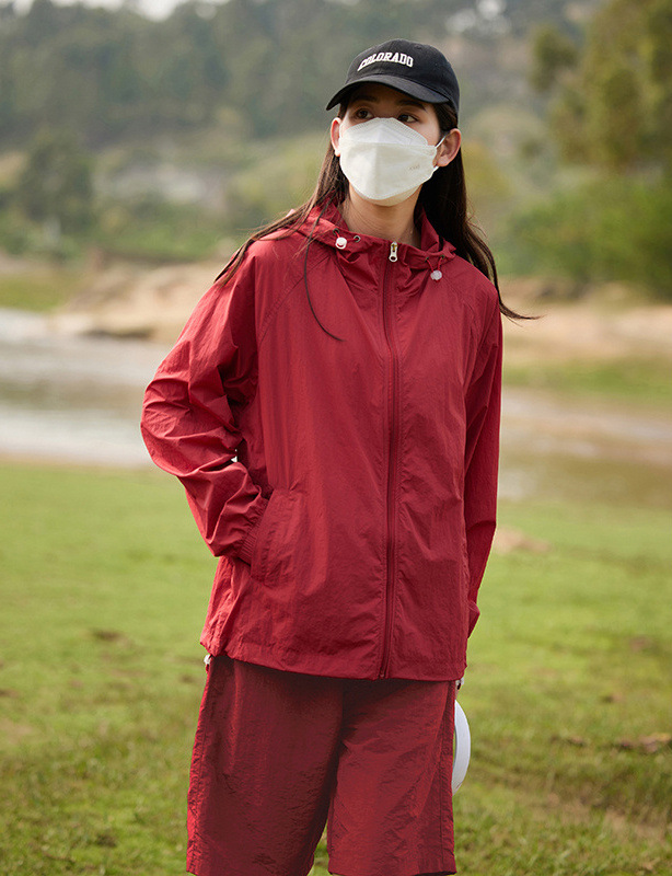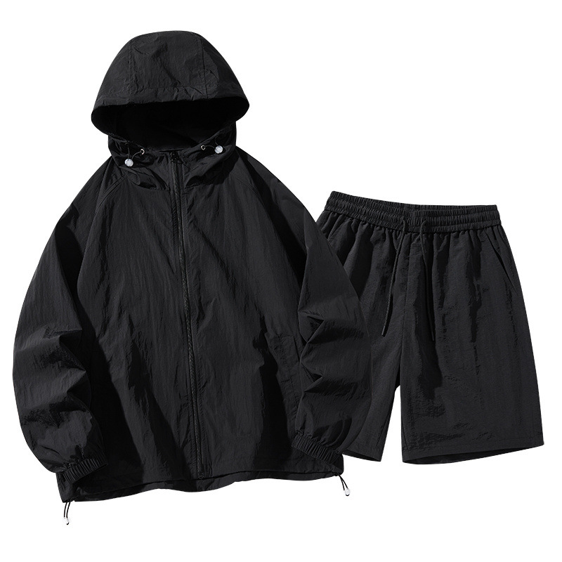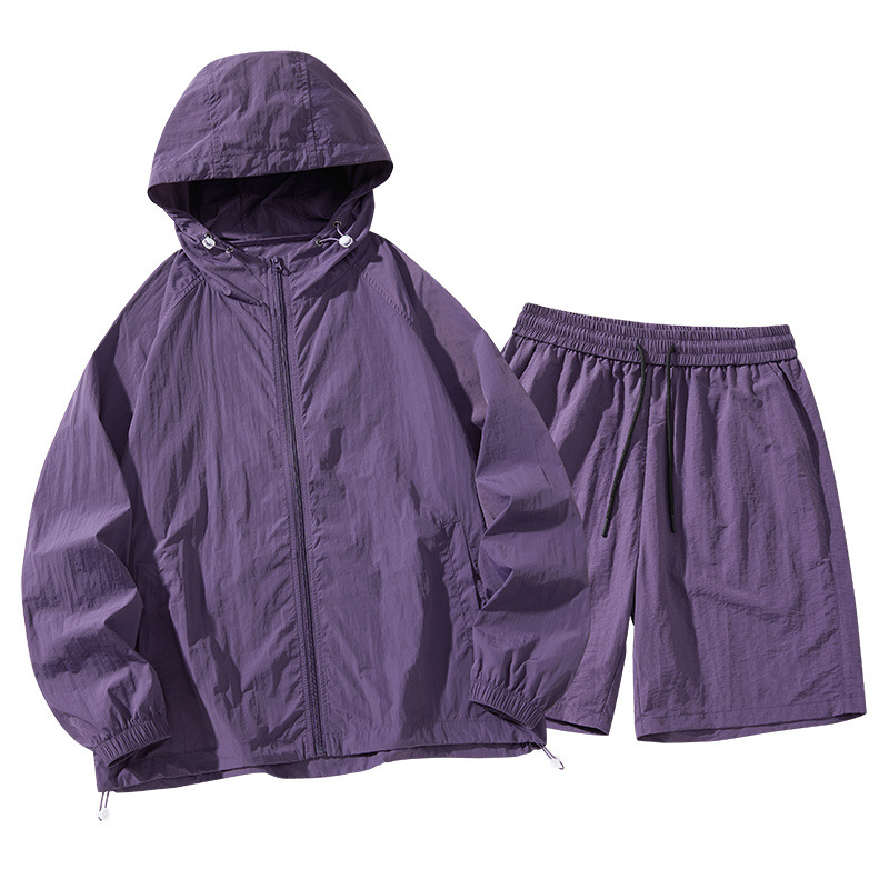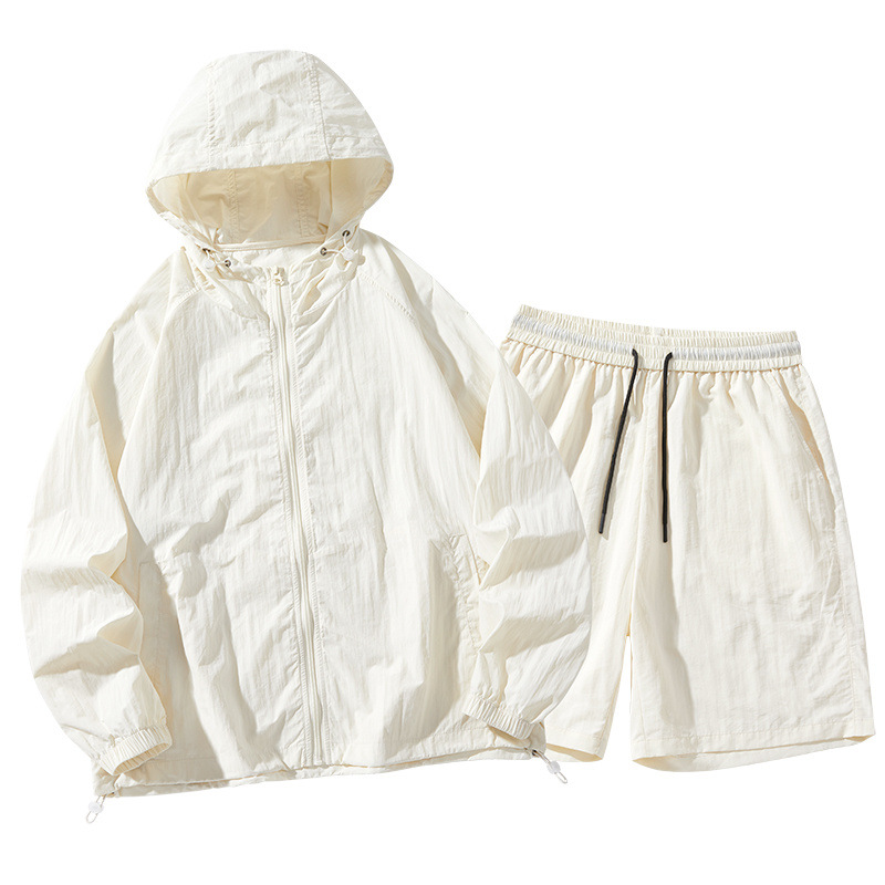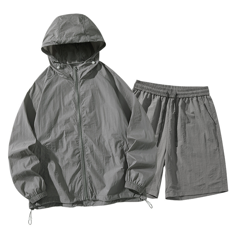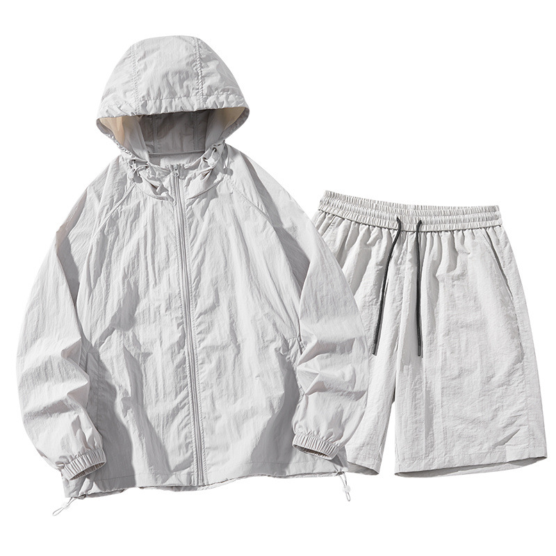 야외 산 스타일 경량 피부 의류 자외선 차단제 세트 후드 남성과 여성의 느슨한 다목적 단색 반바지 재킷 여름